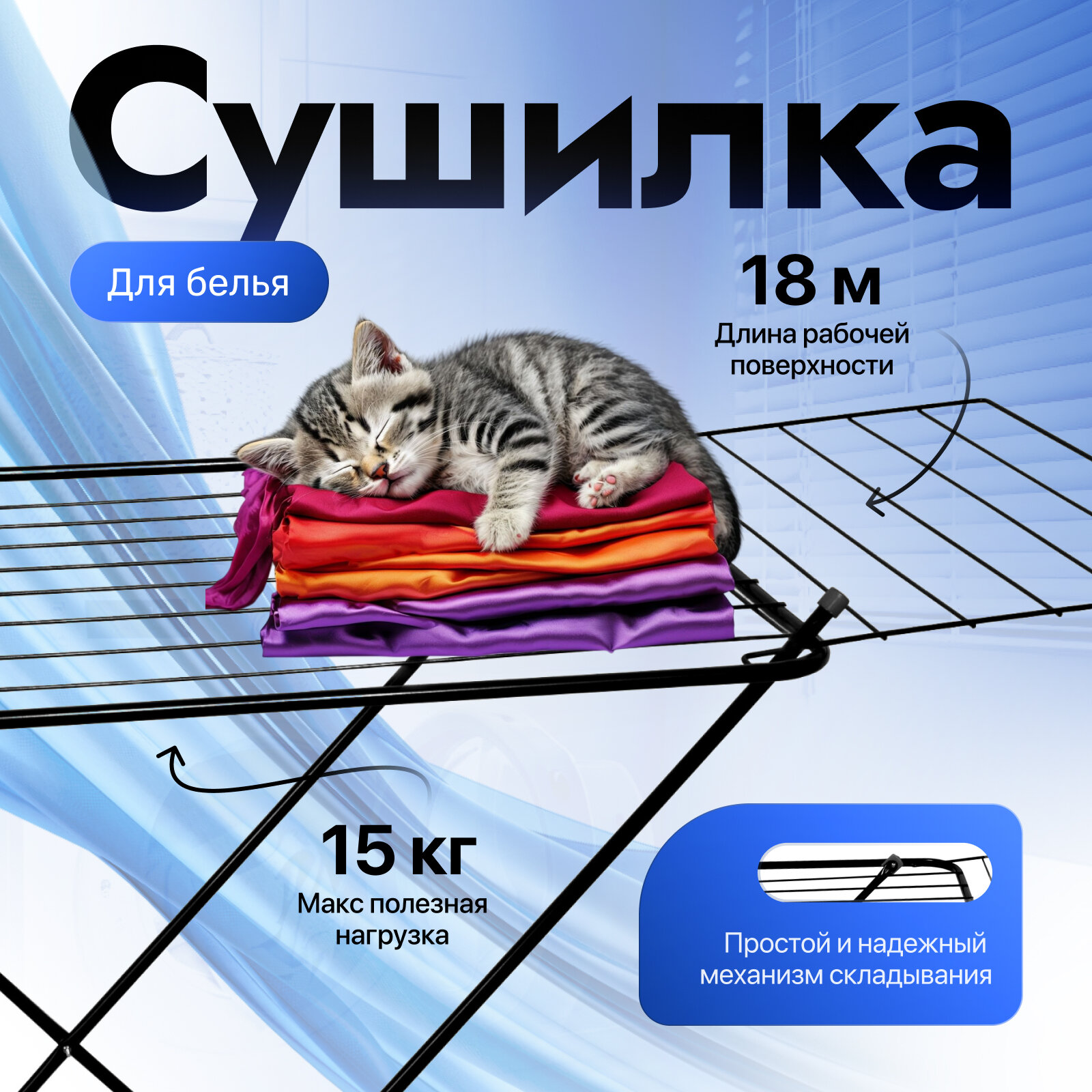 Сушилка для белья напольная Mintaka, рабочая длина 18 м, 120x53x13 см, цвет черный интересное: