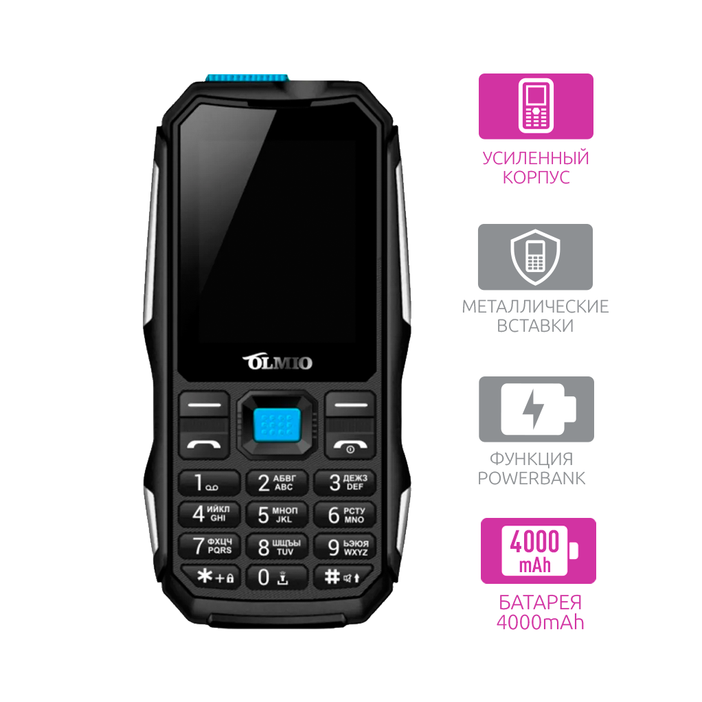Мобильный телефон Olmio, X04 (с функцией внешнего аккумулятора), Черный с синим
