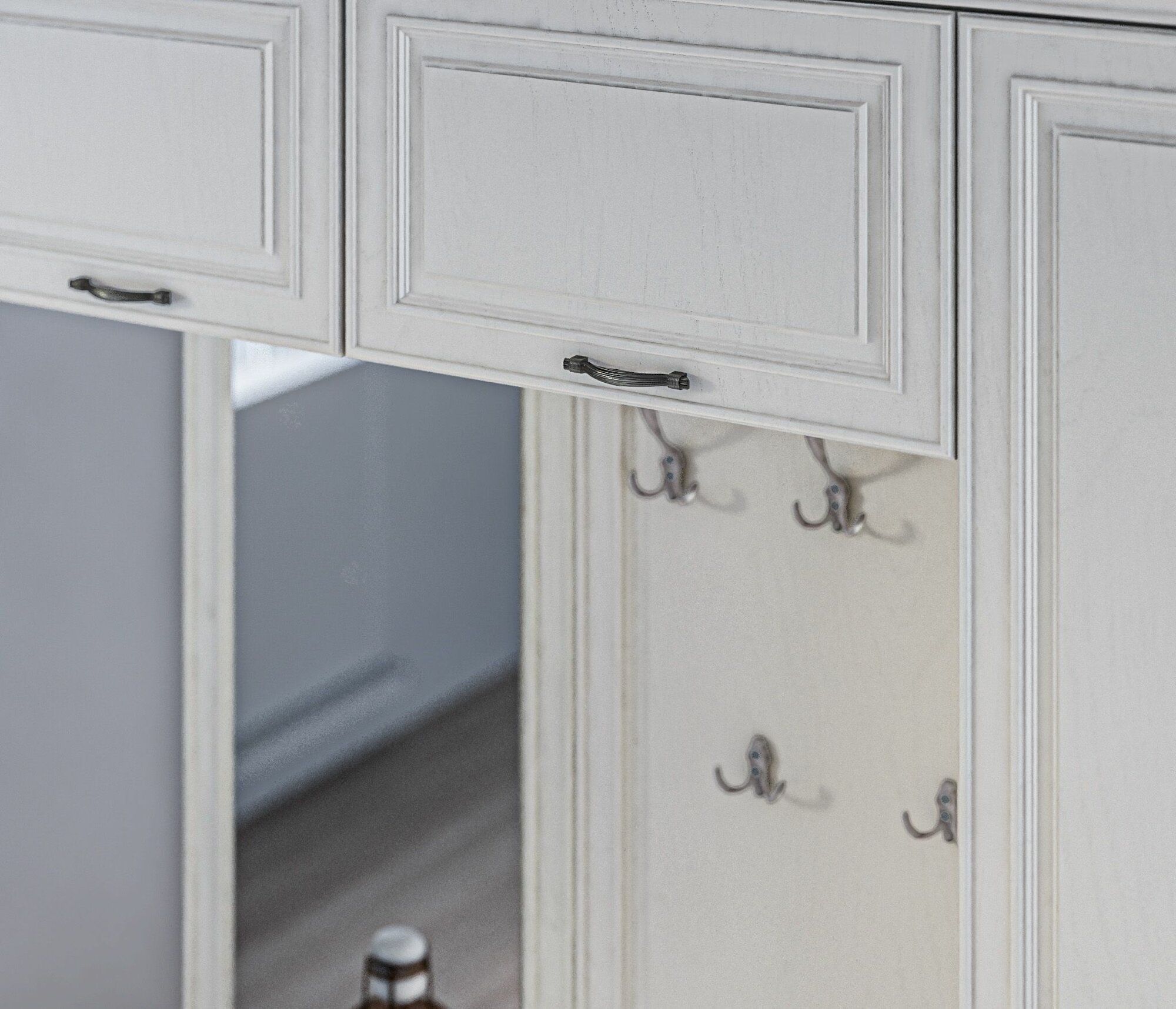 Купить Прихожая столплит Гранд с 5 крючками, с обувницей, ЛДСП, Дуб Приморский Белый/МДФ Классика Светлый, 149х41х227 см