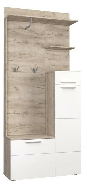 Купить Прихожая Лайн 10.16, цвет дуб крафт серый/белый глянец, ШхГхВ 89,8х35,1х210 см., НЕ универсальная сборка