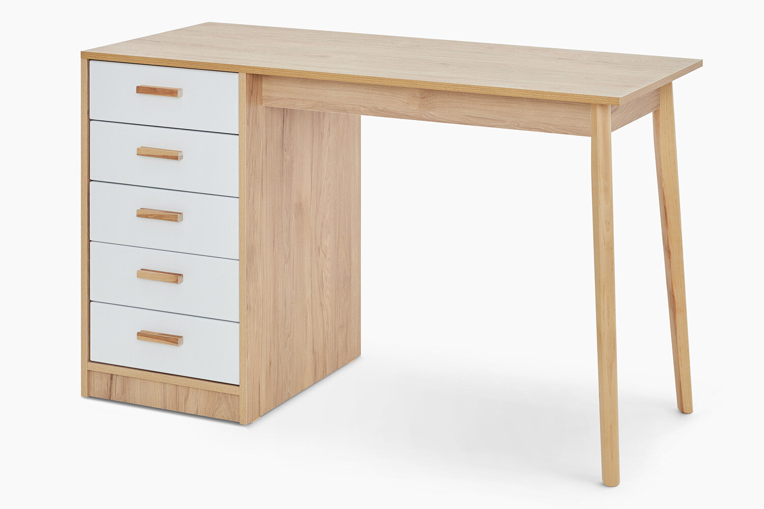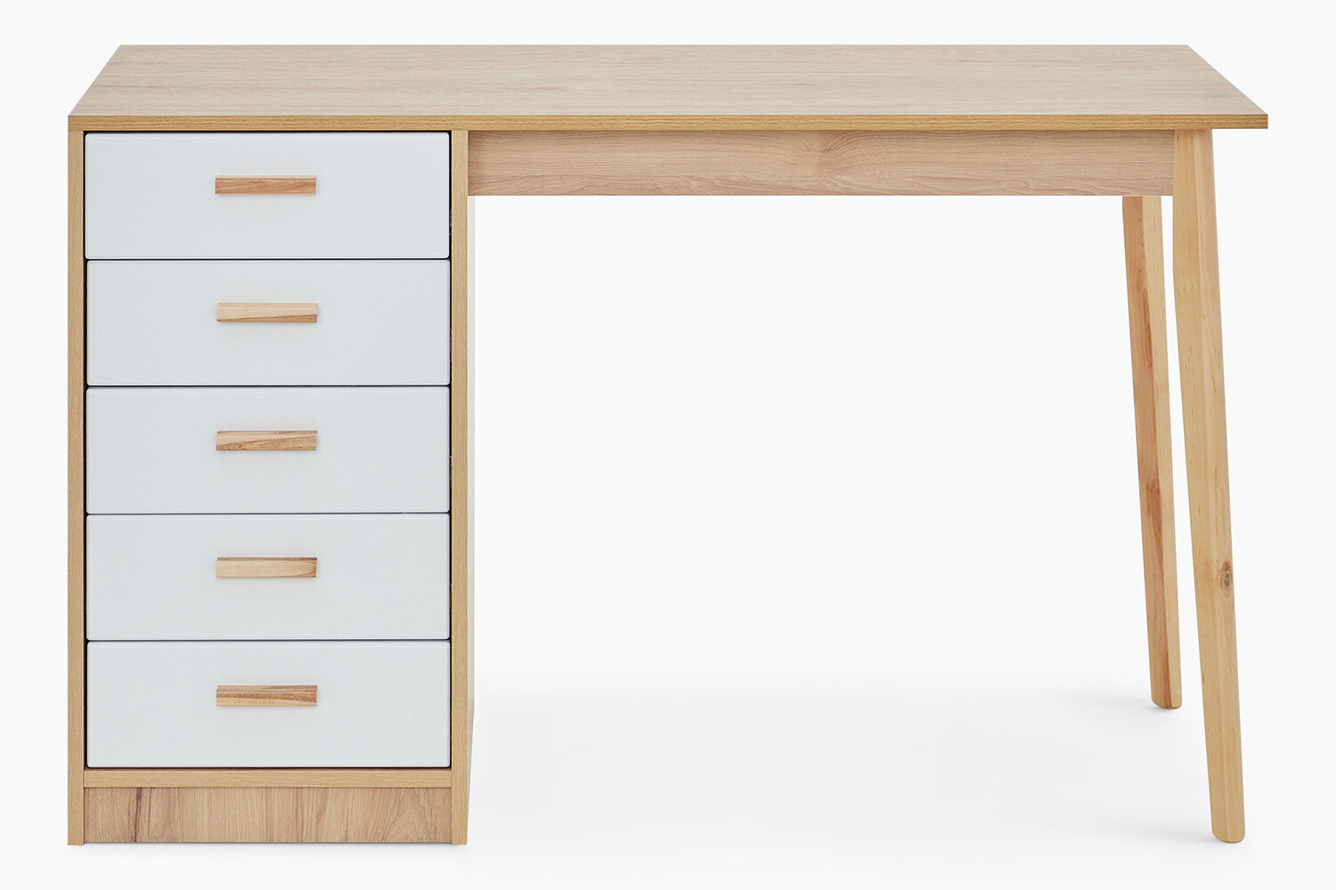 Купить Письменный стол 5 ящиков Леон, 120х75х52, цвет дуб натуральный светлый/бланж