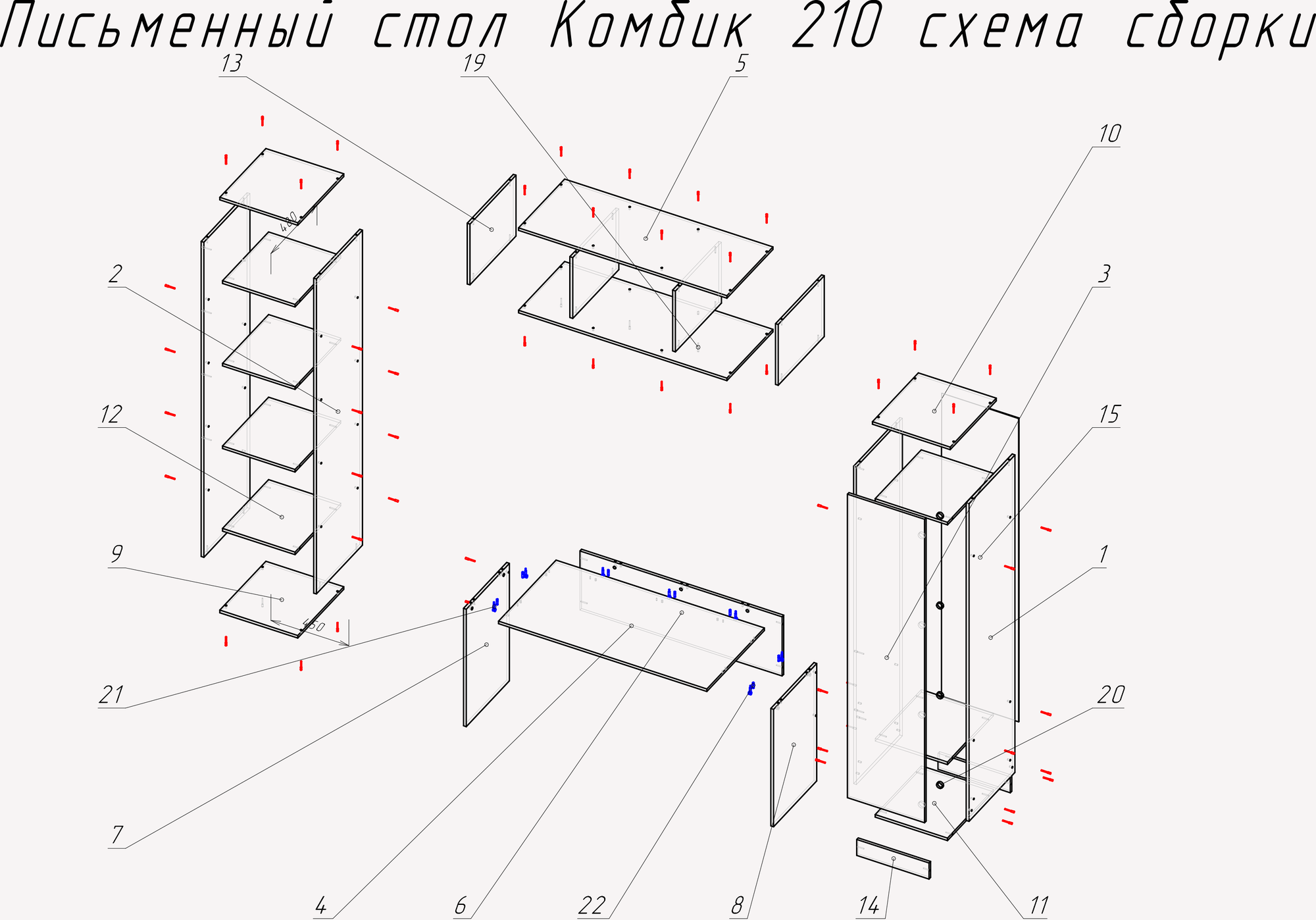 Письменный стол Стеллаж и Шкаф Комбик 220 Белый (ШхВхГ) 220х200х60см