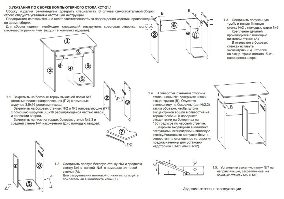 | Особенности | отделение для системного блока, полка для клавиатуры |