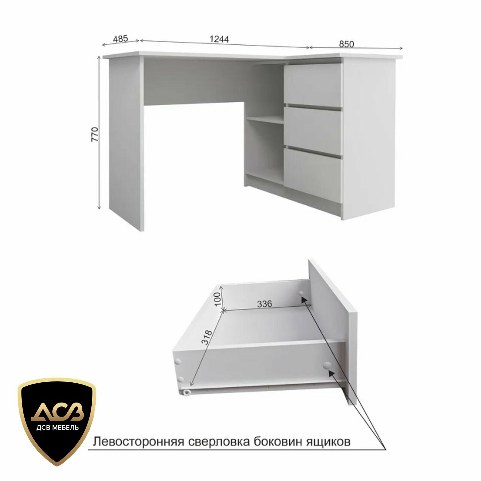 Письменный стол, Компьютерный стол ДСВ Мори МС-16 Белый, 124,4х85х77 см