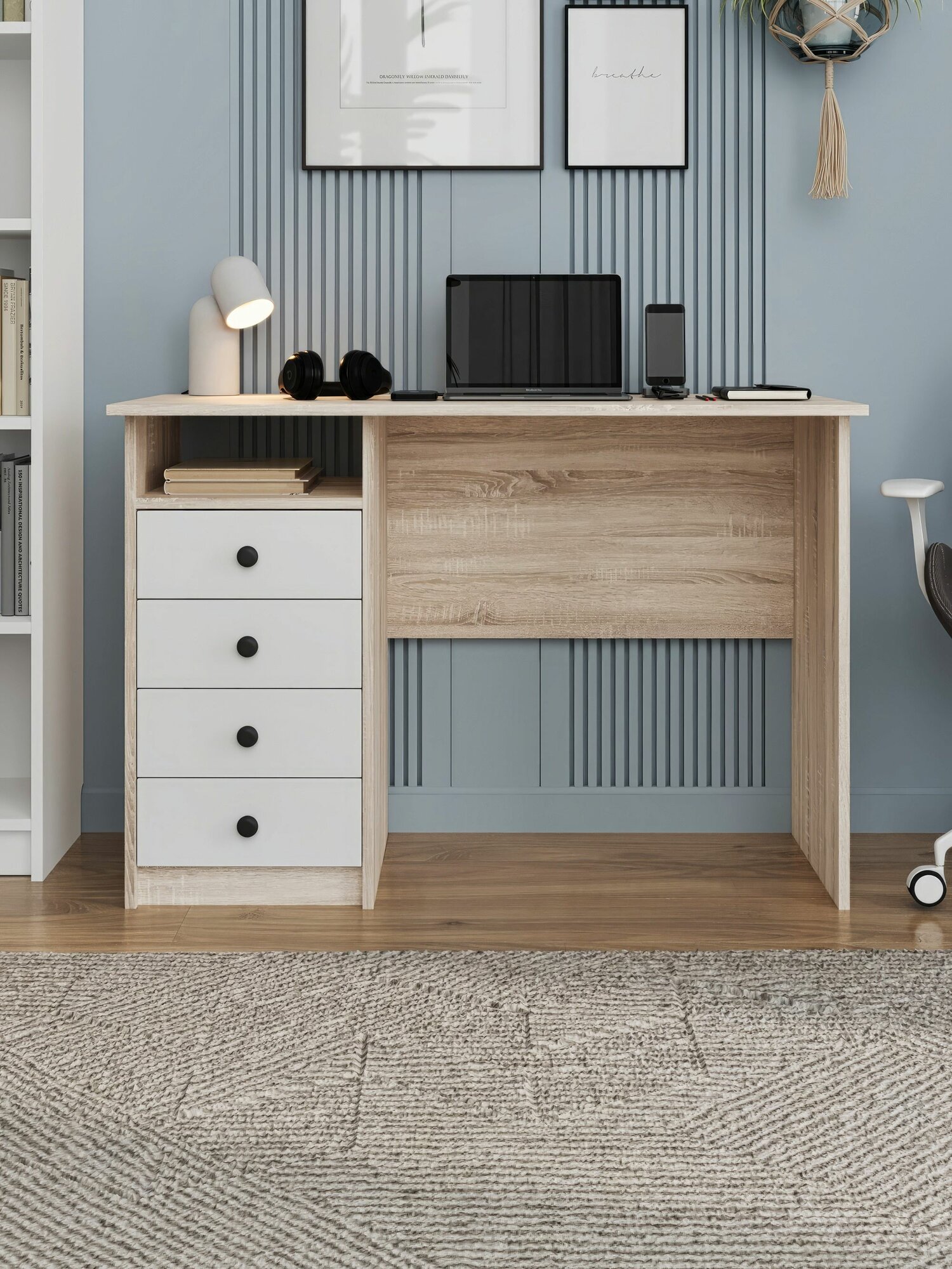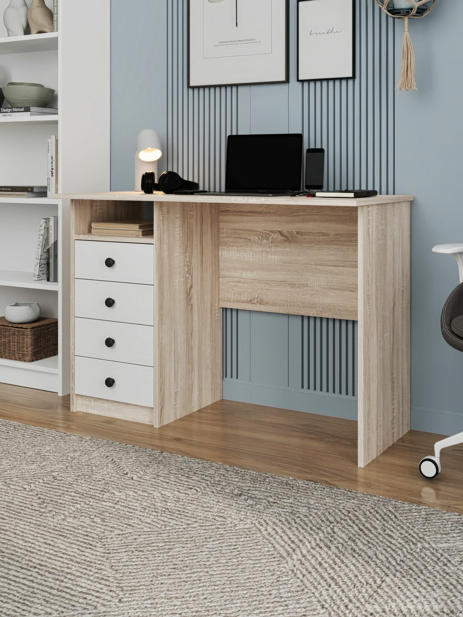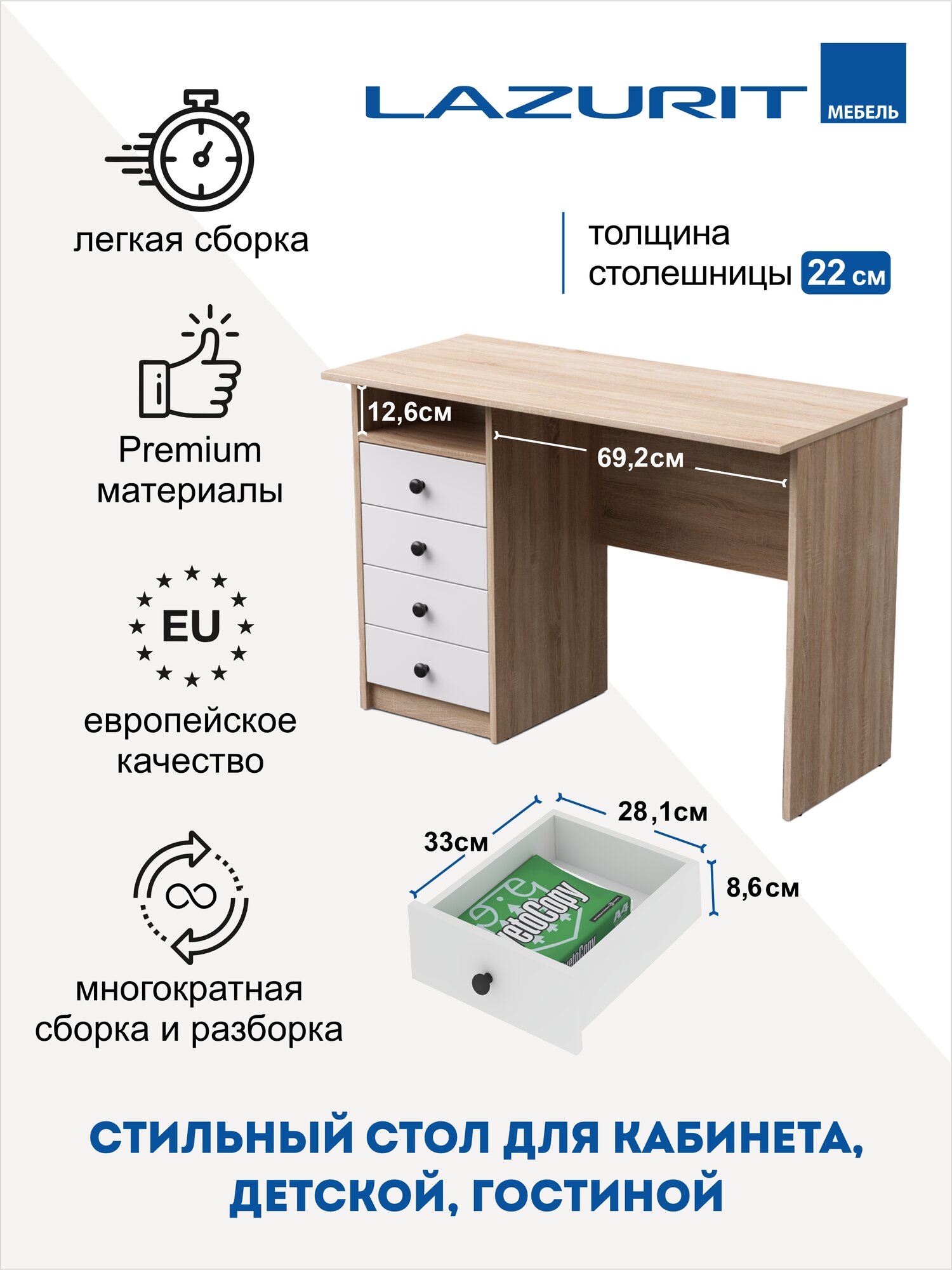 Стол письменный с ящиками сонома белый Lazurit Rocco 110х47 компьютерный для школьника интересное:
