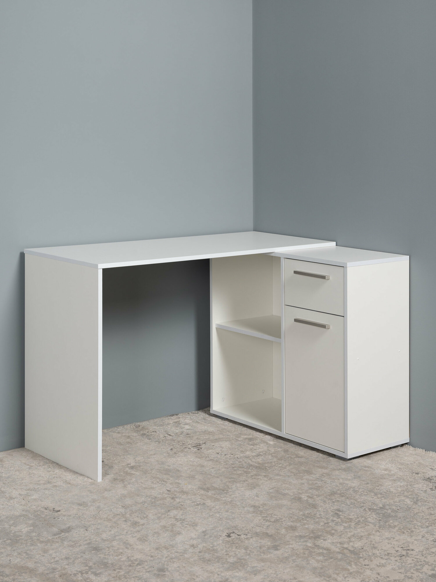 Купить Угловой письменный компьютерный стол Санди 12.39 F с выдвижным ящиком и полками для хранения