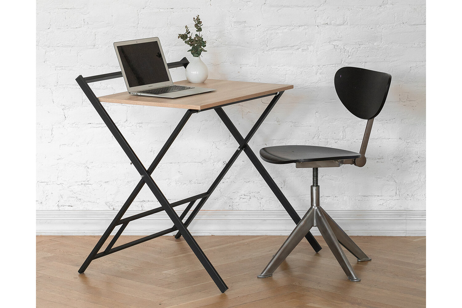 Стол складной компьютерный 600 мм, черный/дуб бардолино