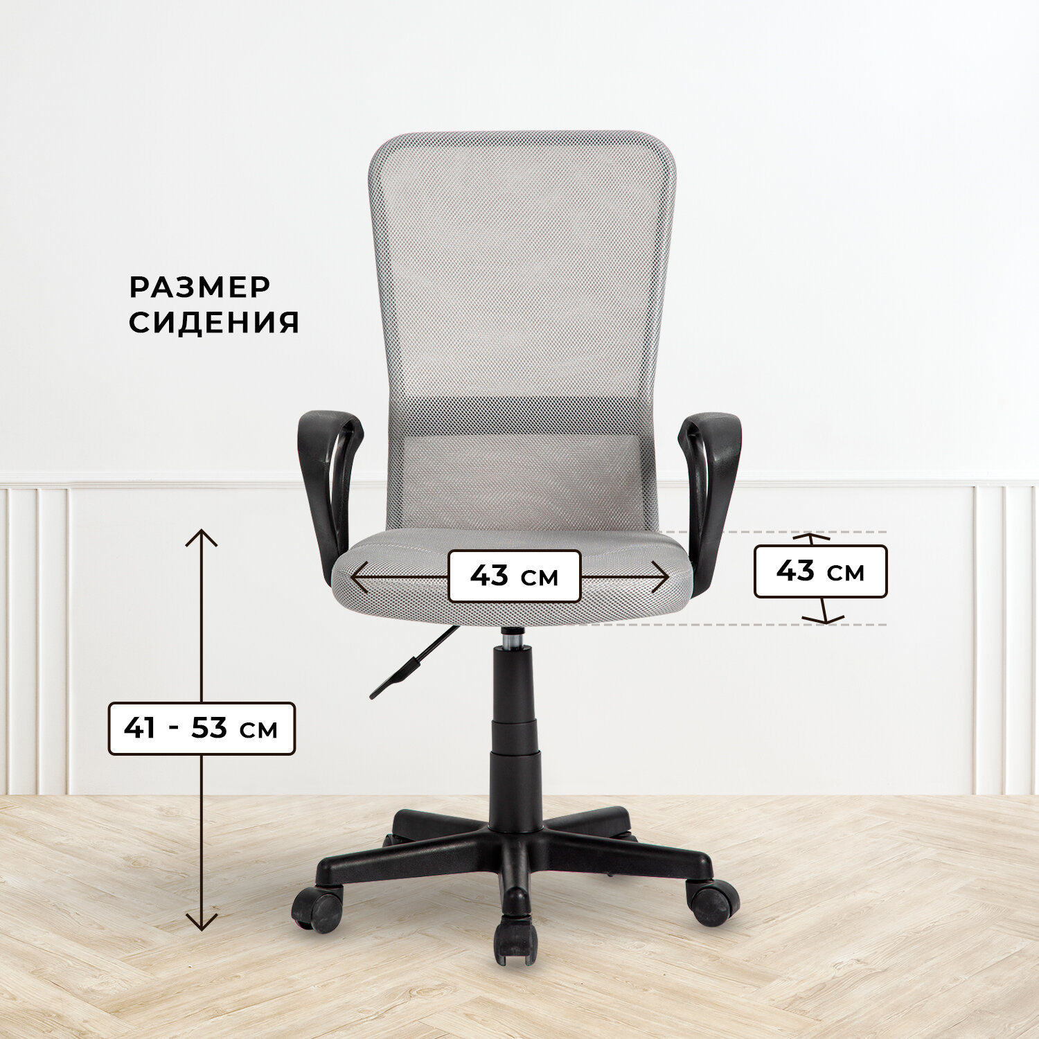 Купить Кресло компьютерное рабочее на колесиках BYROOM Office Fix grey HS-8055-A-G с подлокотниками для ПК. Крутящийся офисный стул со спинкой для взрослого, школьника, руководителя серого цвета