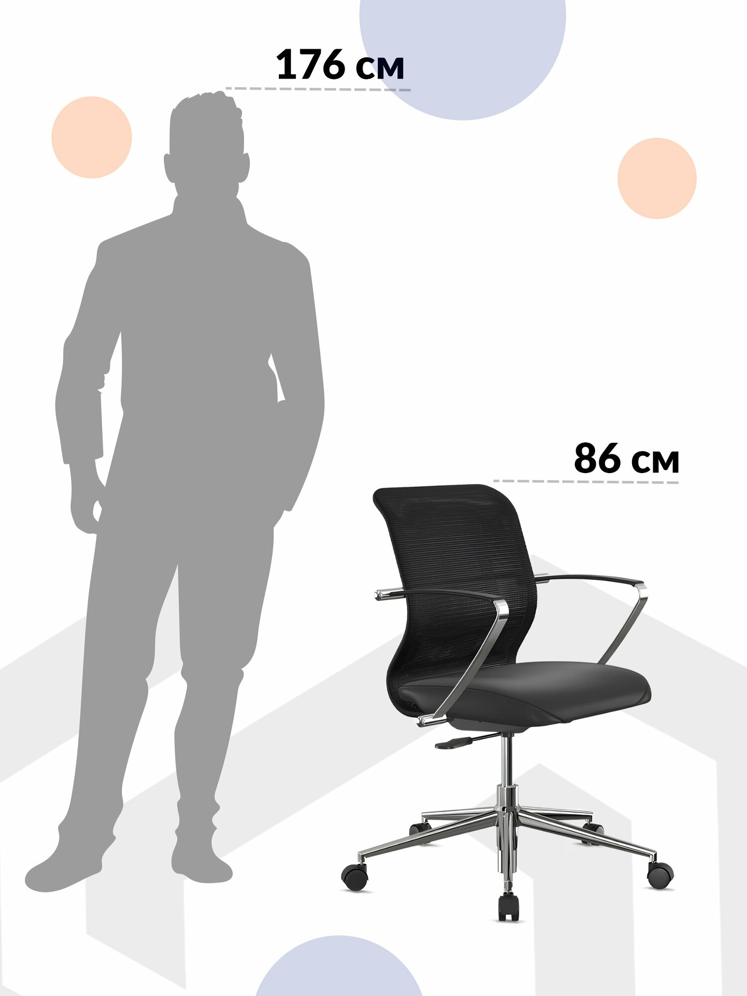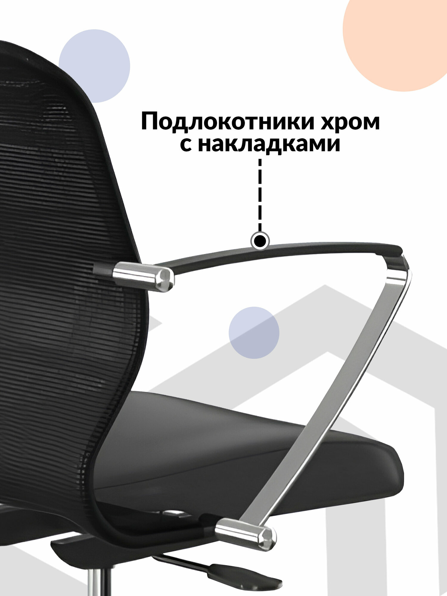 Кресло METTA компьютерное черное, экокожа, сетка, крестовина металл - Офисное рабочее кресло оператора интересное: