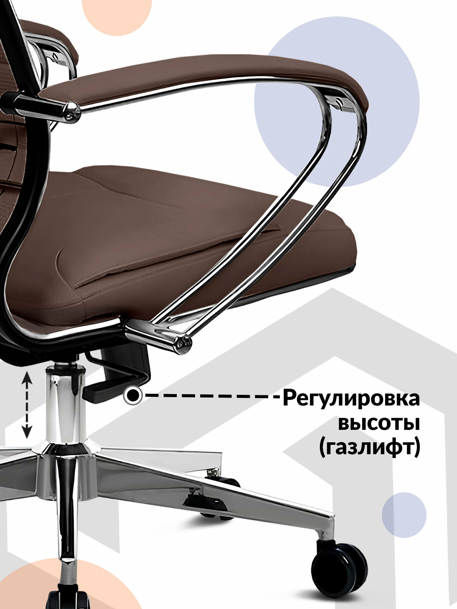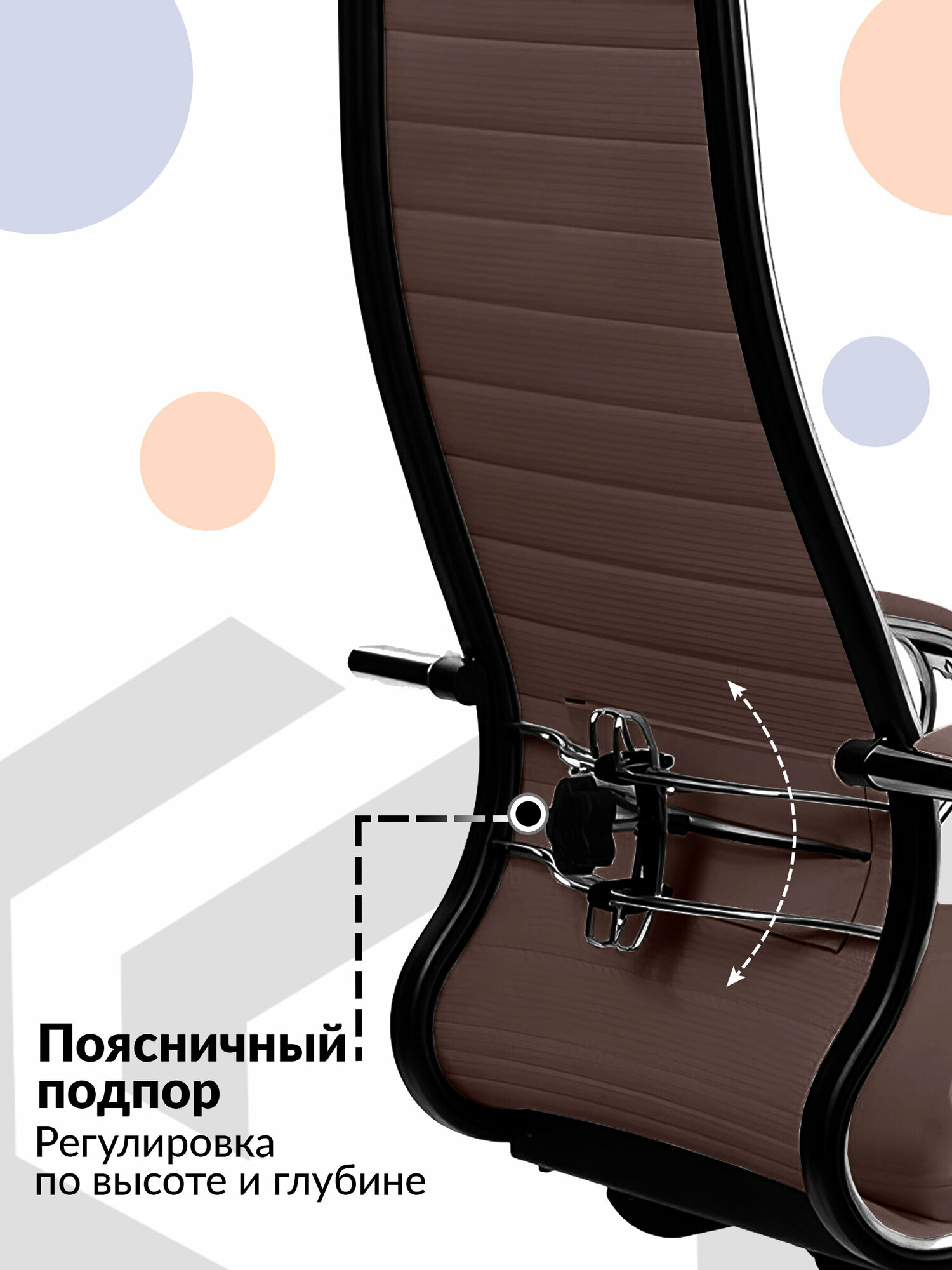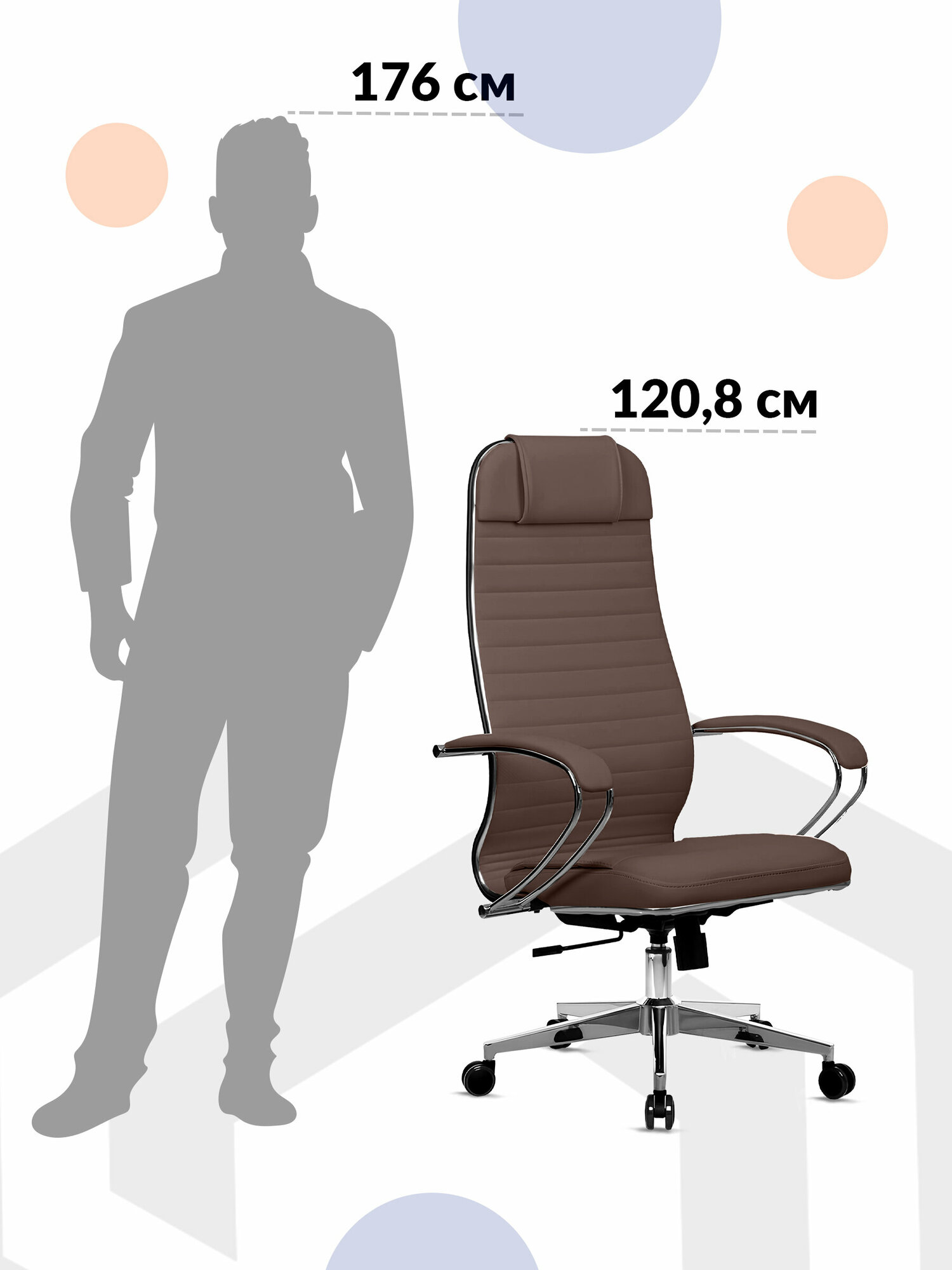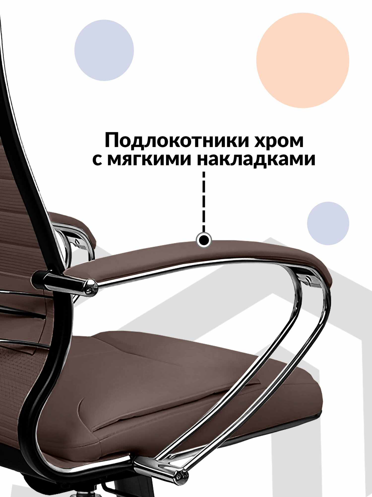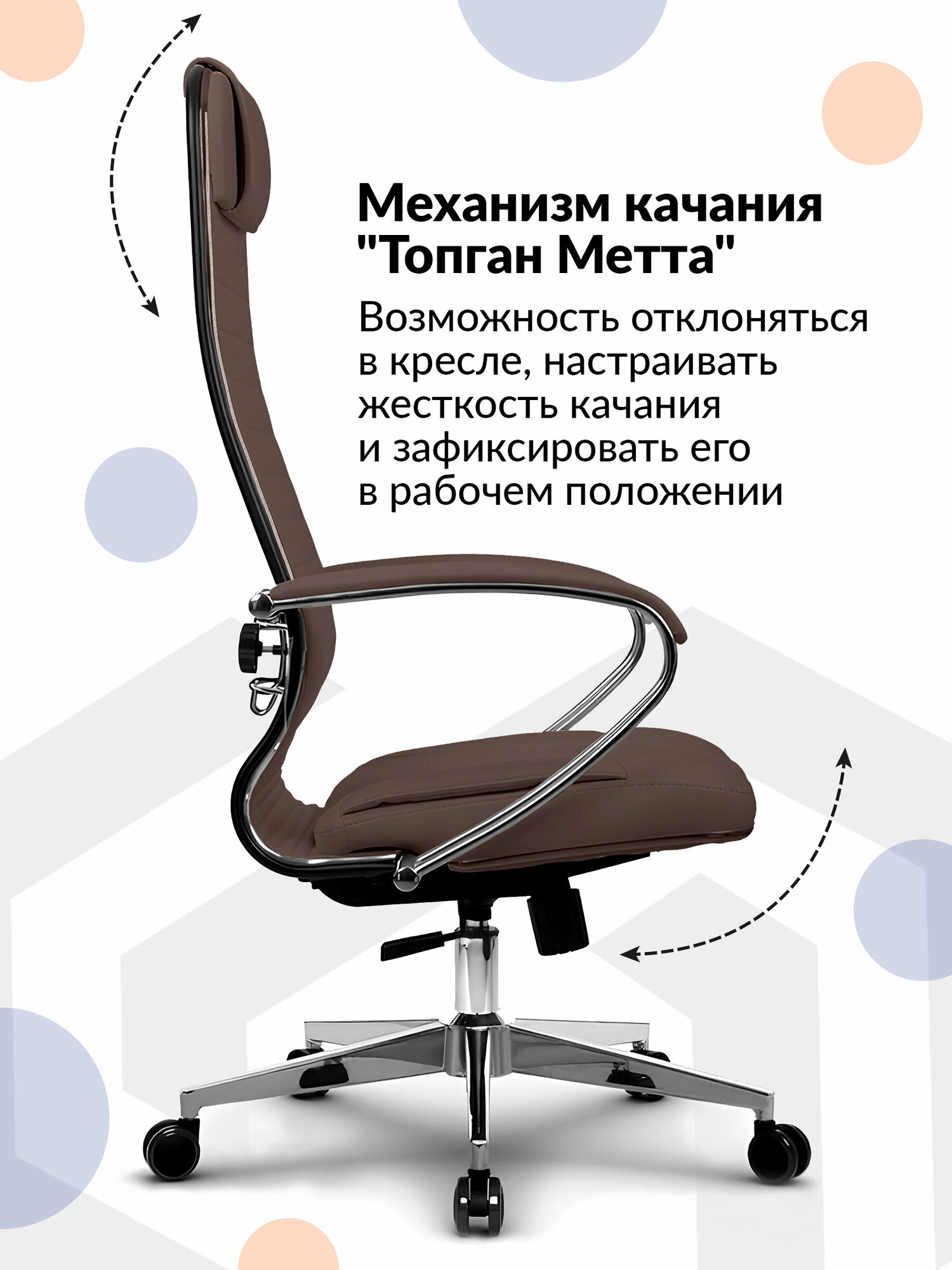 Кресло компьютерное Метта 6-2 на колесиках, с подлокотниками, высокой спинкой, подголовником, экокожа, коричневое / Стул ортопедический, 120 кг