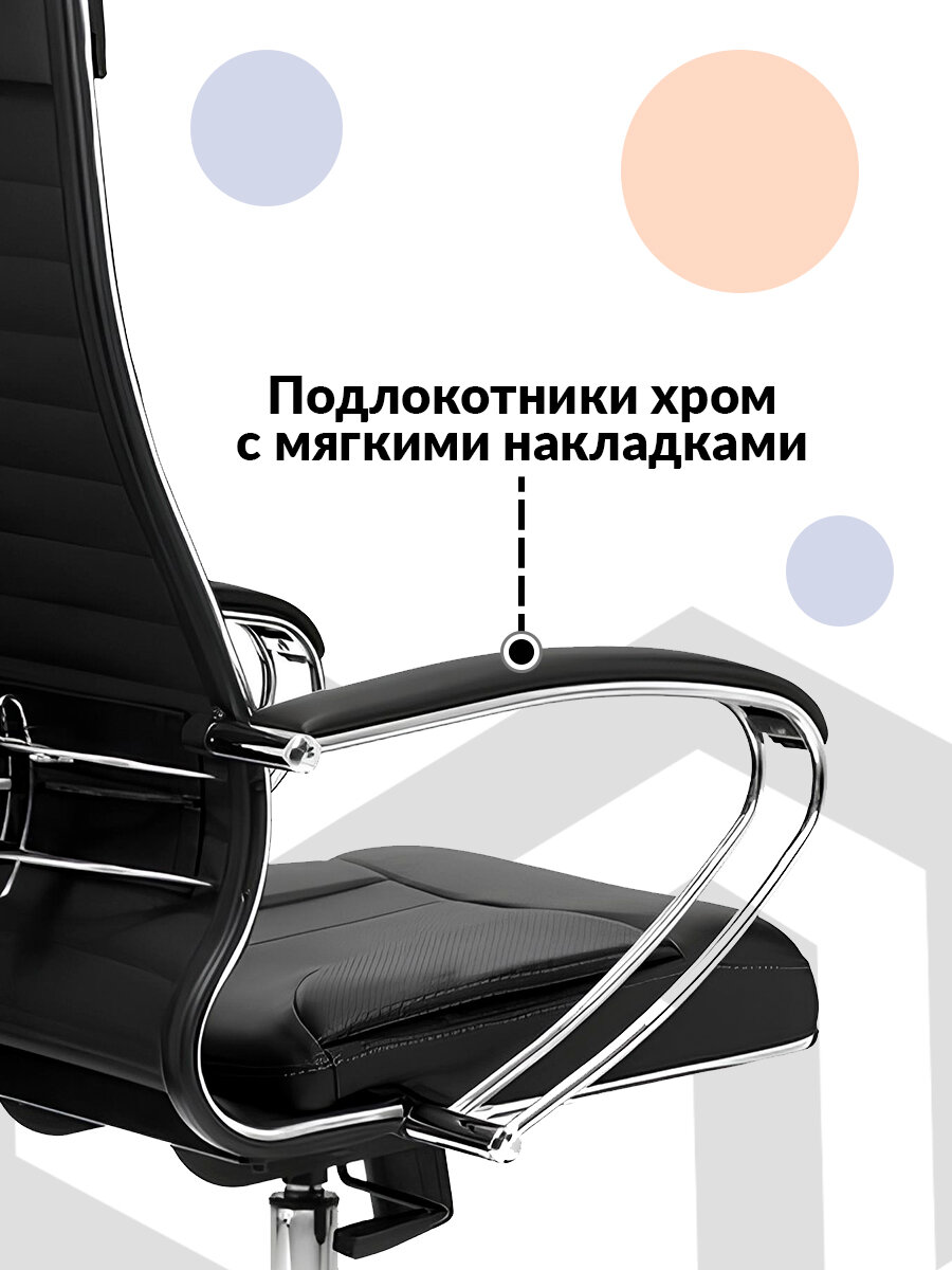 Кресло компьютерное Метта 6-2 на колесиках, с подлокотниками, высокой спинкой, подголовником, экокожа, черное / Стул ортопедический, 120 кг