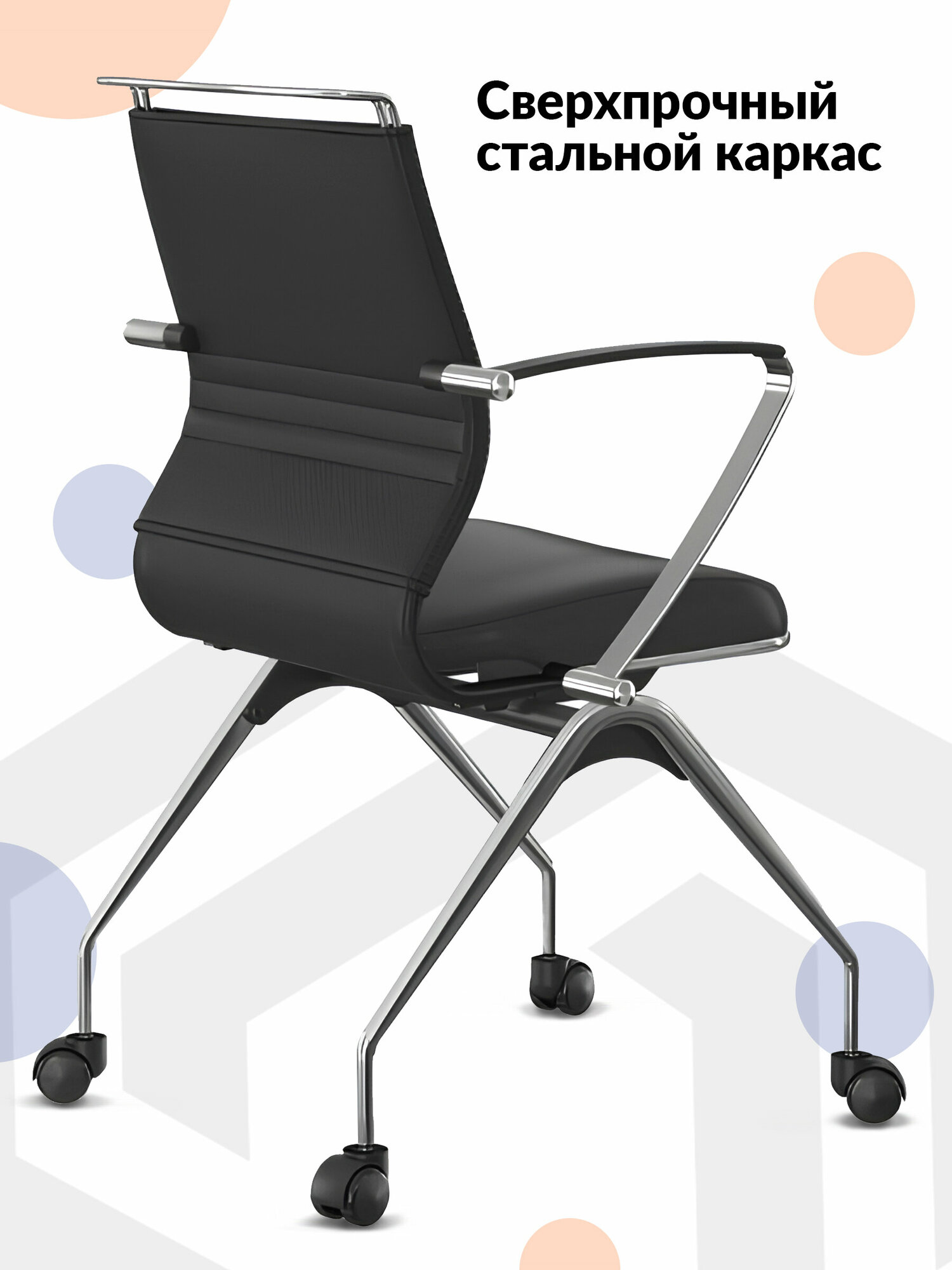 Кресло METTA компьютерное черное, экокожа, основание металл - Офисное рабочее кресло оператора интересное: