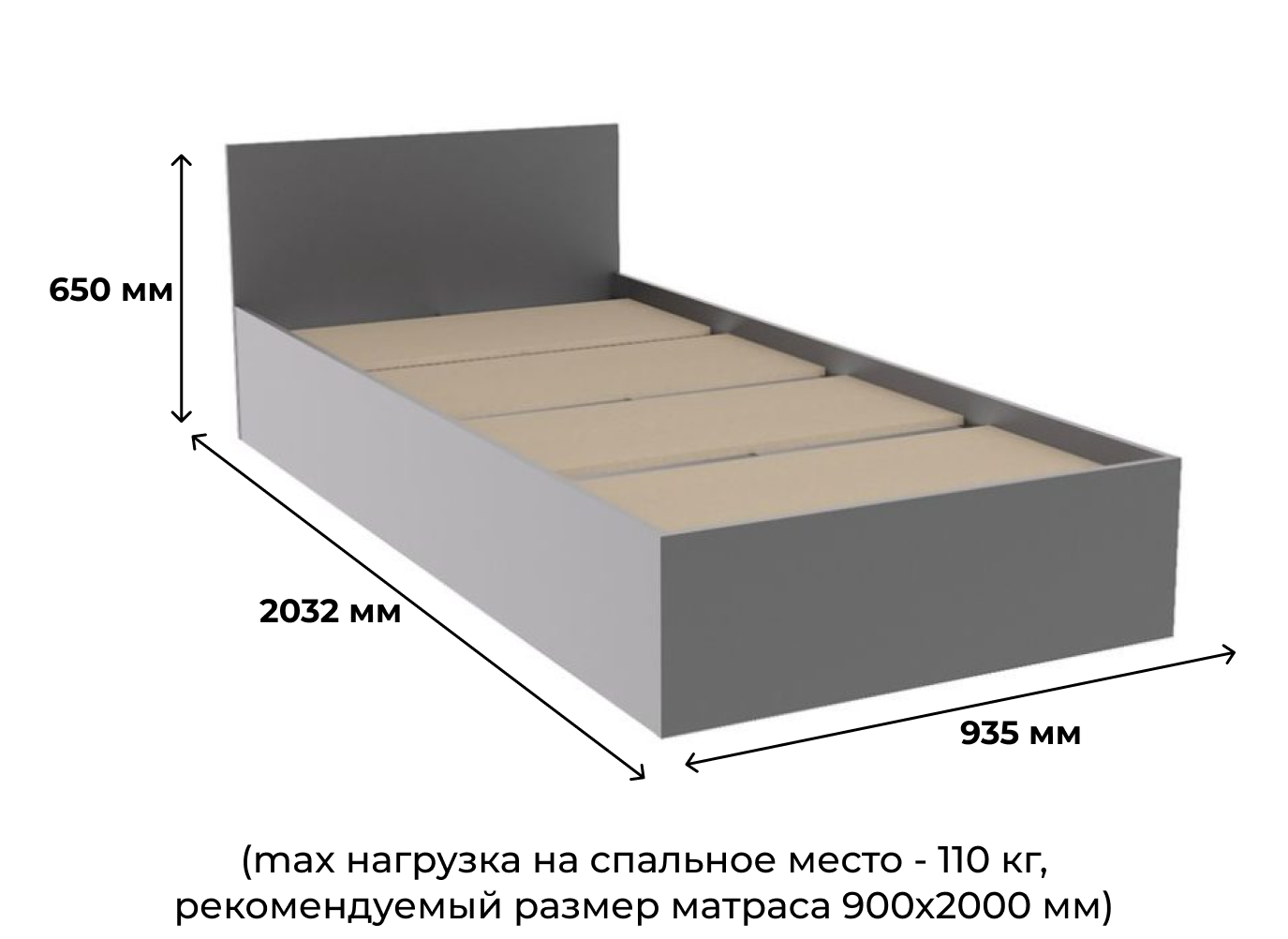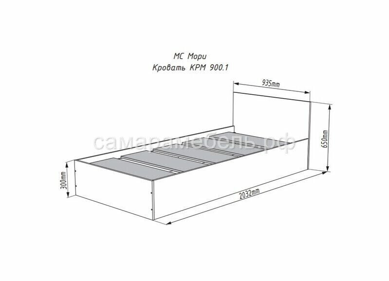 Кровать ДСВ Мебель Мори КРМ 900.1/1 (МП) Графит Размеры: Высота 650мм Глубина 2032мм Ширина 935мм