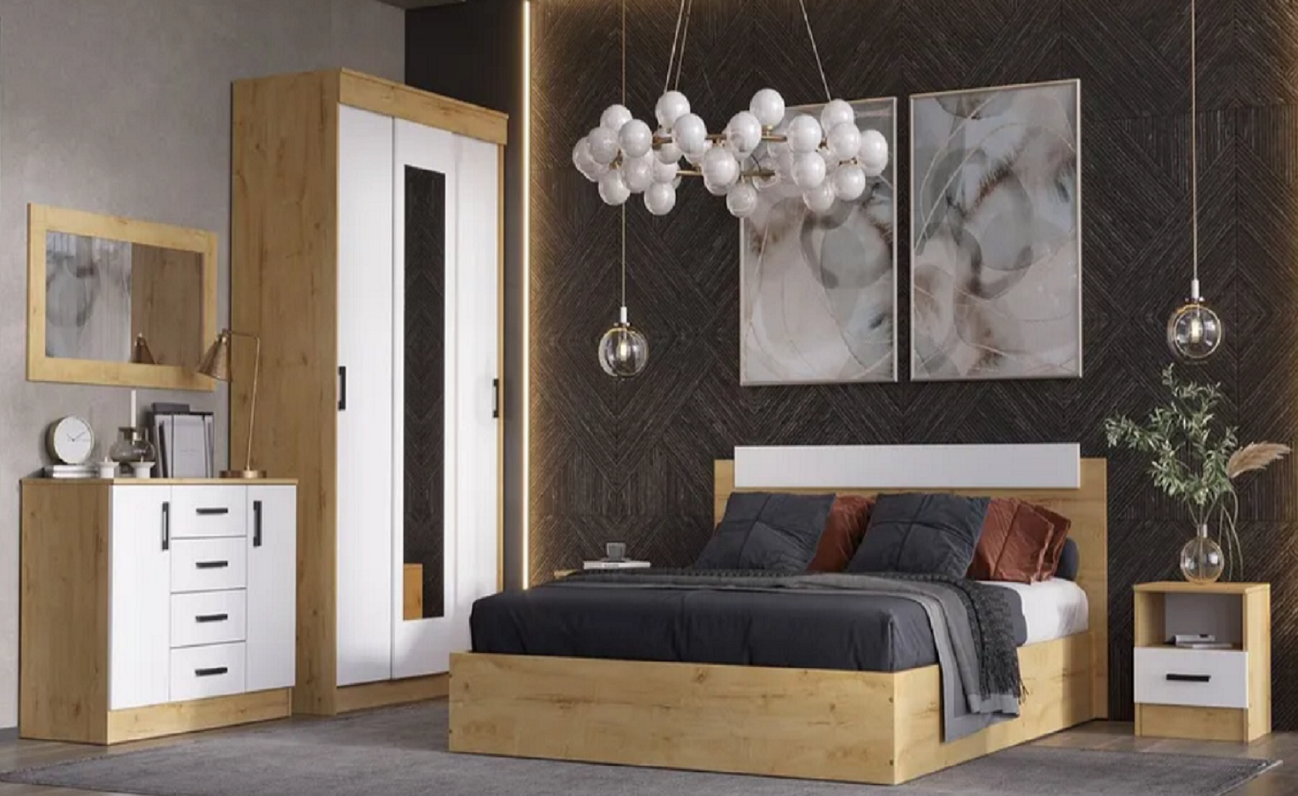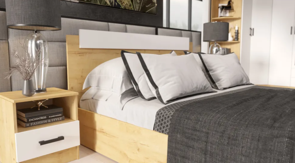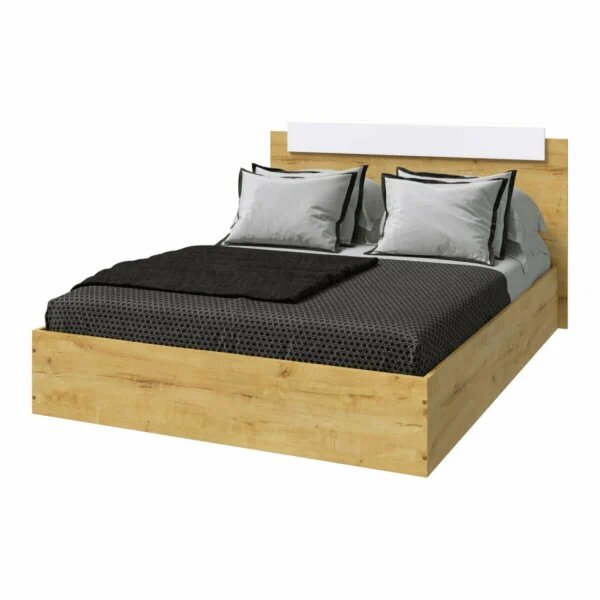 Кровать двуспальная ЭКО 160х200, Дуб вотан/Белый гладкий, с настилом ДСП