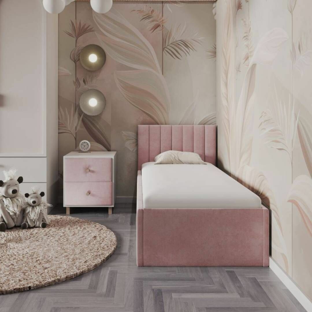 Кровать детская 160х80 с защитными бортиками, полоска Мия, розовый, трансформер, ткань велюр