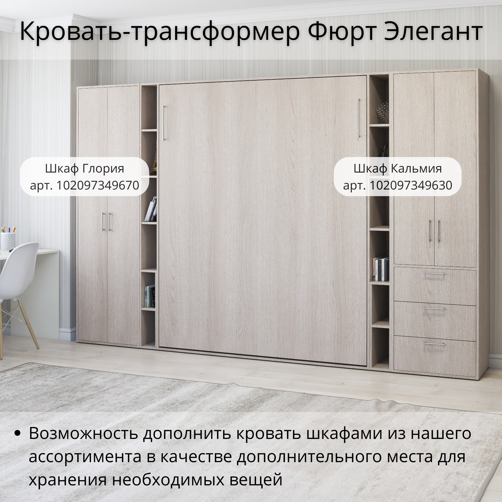 СохранитьШкаф кровать трансформер с креплением к стене, Stylint, Фюрт Элегант, 140х200, Ясень шимо интересное: