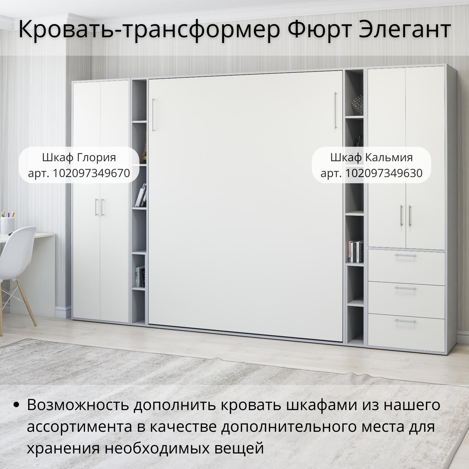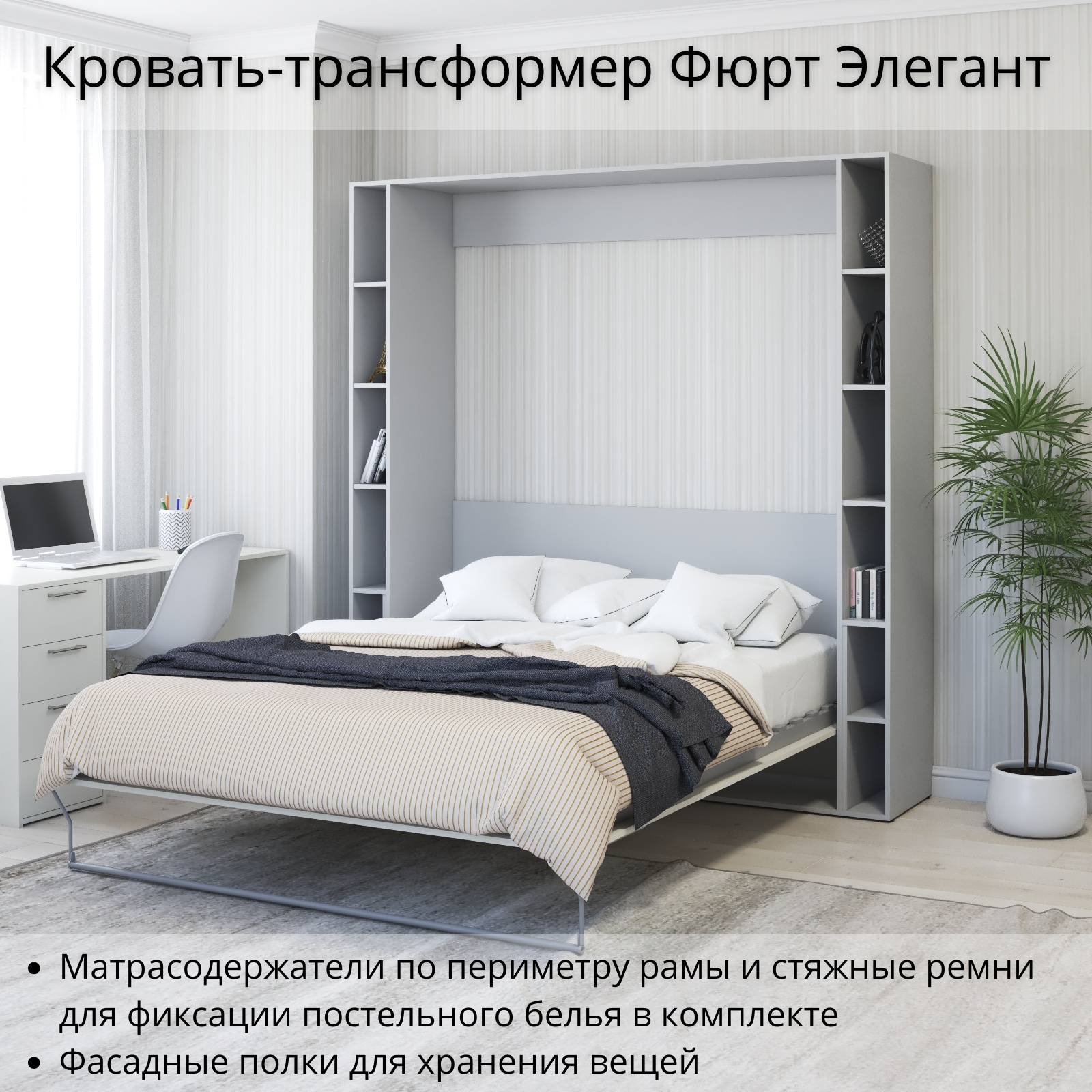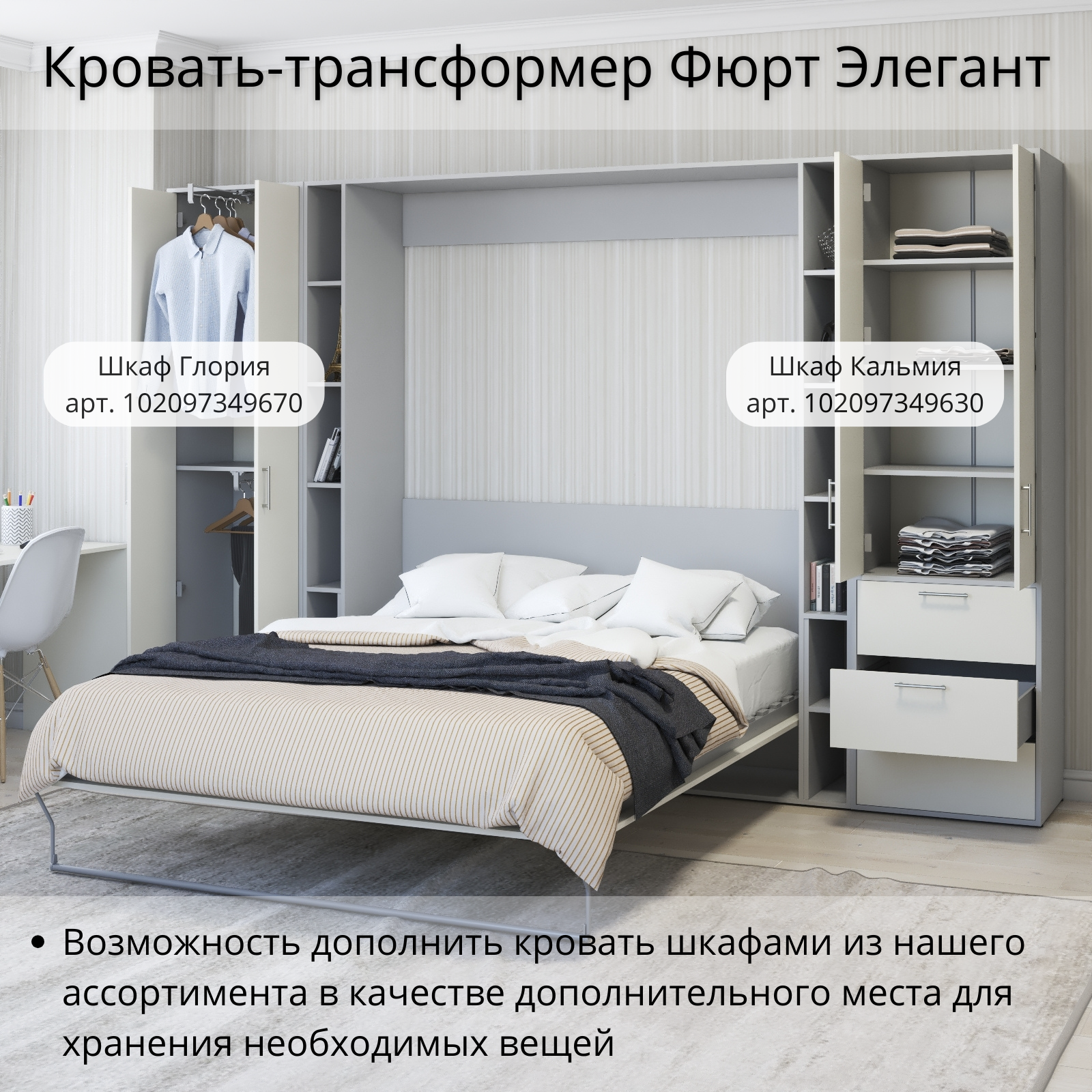 СохранитьШкаф кровать трансформер с креплением к стене, Stylint, Фюрт Элегант, 160х200, Серый шагрень/Белый платиновый интересное: