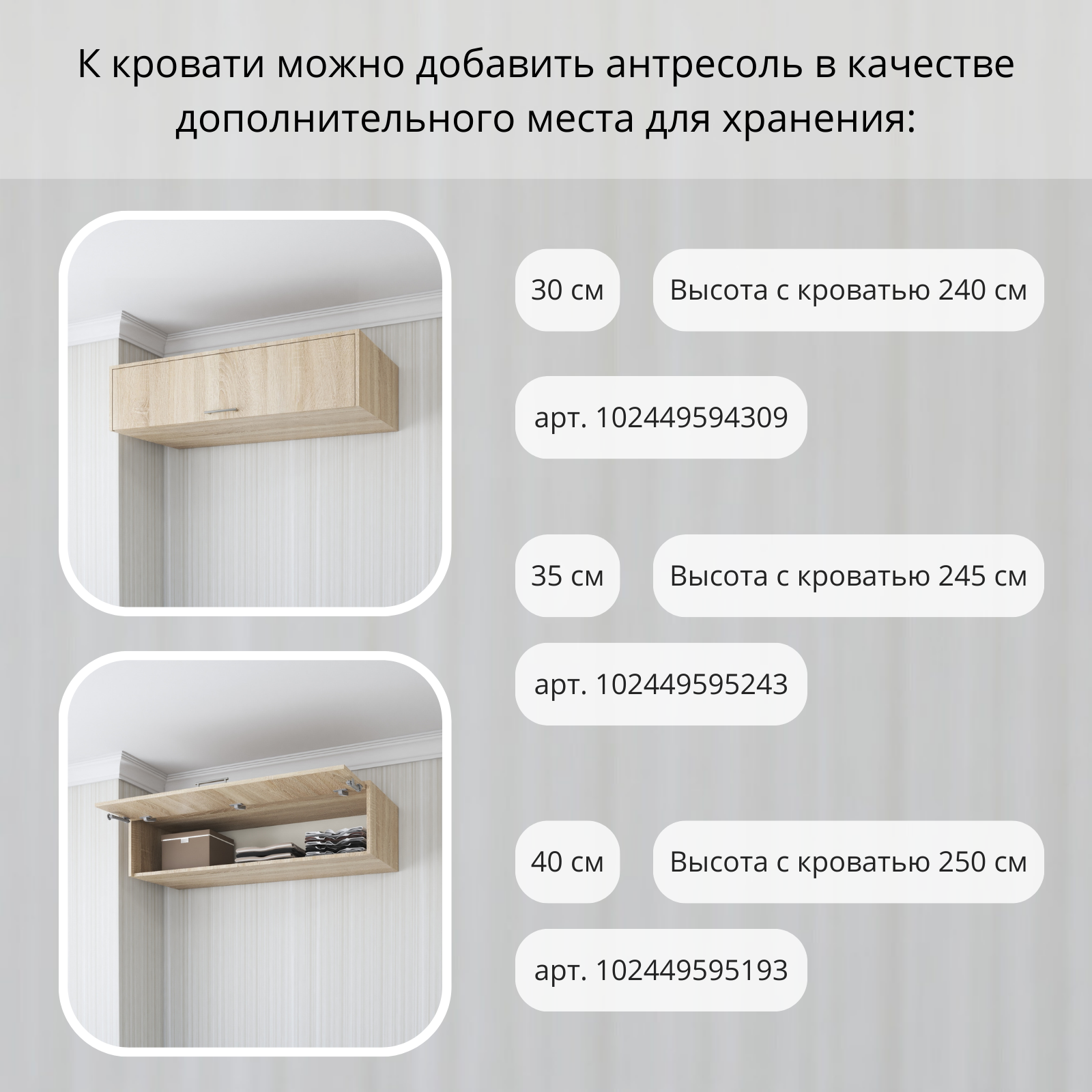 | Дополнительная информация | Внимание! Мебель в данном заказе должна быть прикреплена к капитальной бетонной стене, толщиной не менее 12 см, и не имеющей дополнительных слоёв, таких как утеплитель, звукоизоляция, толстая штукатурка и т.д. Крепление Мебели к стене, не отвечающей этим требованиям, запрещено. Сборка и крепление Мебели к стене должны осуществляться квалифицированным специалистом. Выбор стены, соответствующей этим требованиям, возлагается на клиента. Перед использованием кровати необходимо ознакомиться с техническим паспортом |