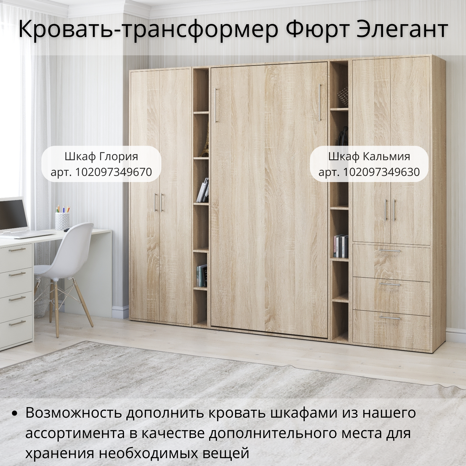 СохранитьШкаф кровать трансформер с креплением к стене, Stylint, Фюрт Элегант, 90х200, Дуб сонома интересное: