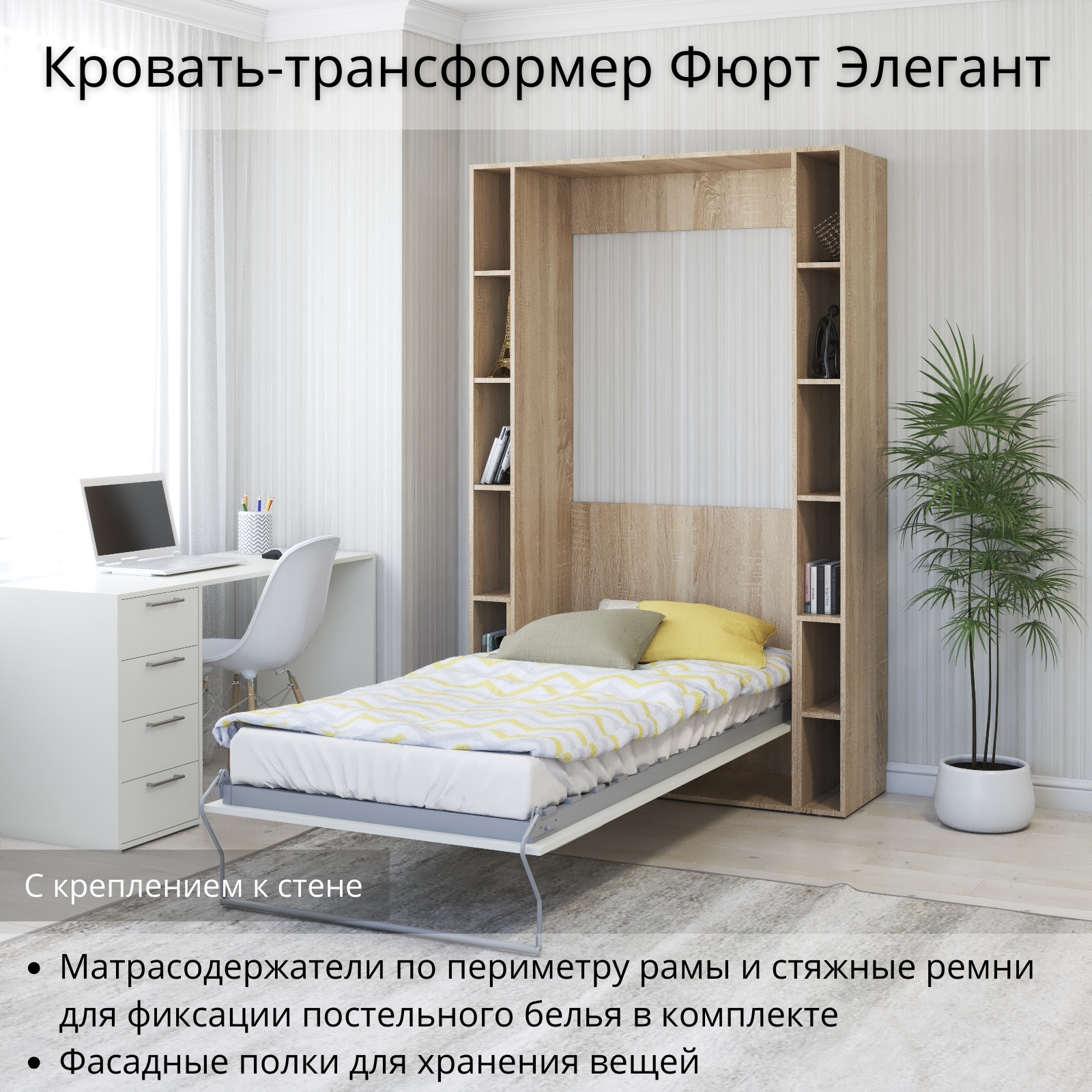 Шкаф кровать трансформер с креплением к стене, Stylint, Фюрт Элегант, 90х200, Ясень шимо