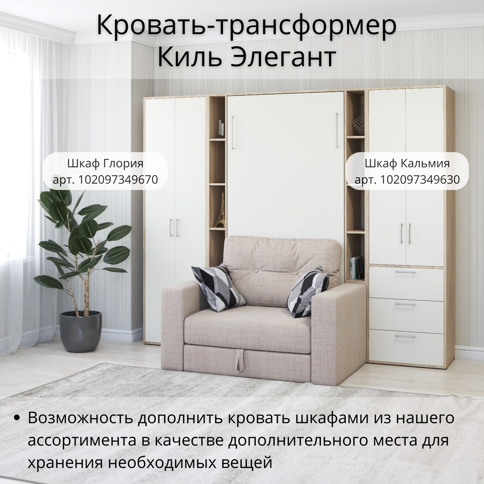 СохранитьШкаф кровать трансформер с креплением к стене, Stylint, Фюрт Элегант, 90х200, Дуб сонома/Белый платиновый интересное: