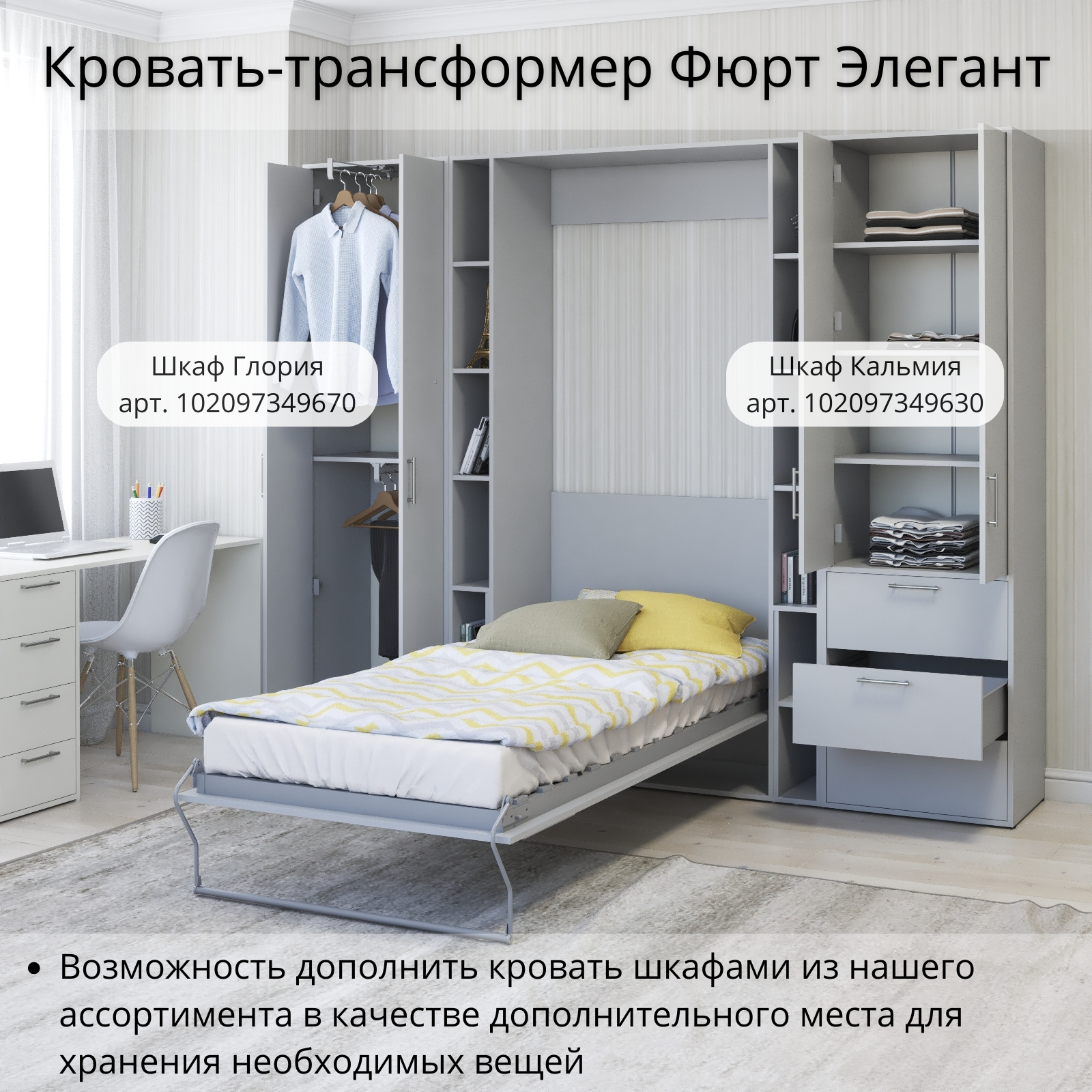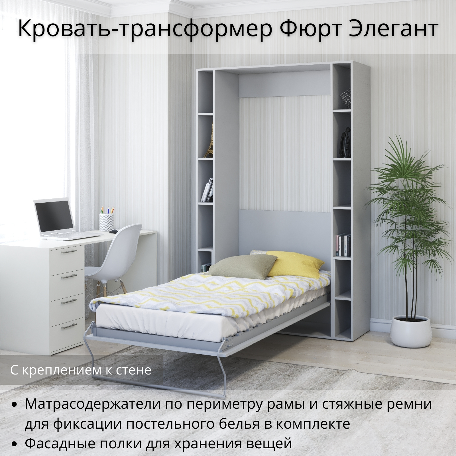 СохранитьШкаф кровать трансформер с креплением к стене, Stylint, Фюрт Элегант, 90х200, Серый шагрень интересное: