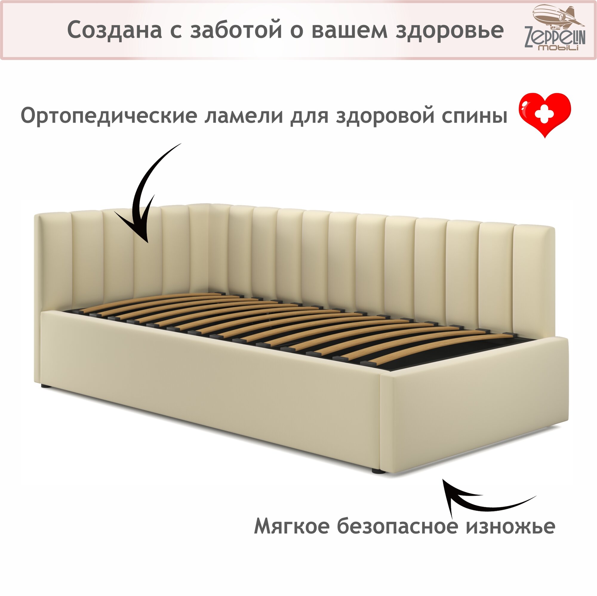 СохранитьКровать-тахта Milena 90х200 односпальная бежевая подъемная, мягкая спинка из велюра, с ортопедическими ламелями, с ящиком для хранения интересное: