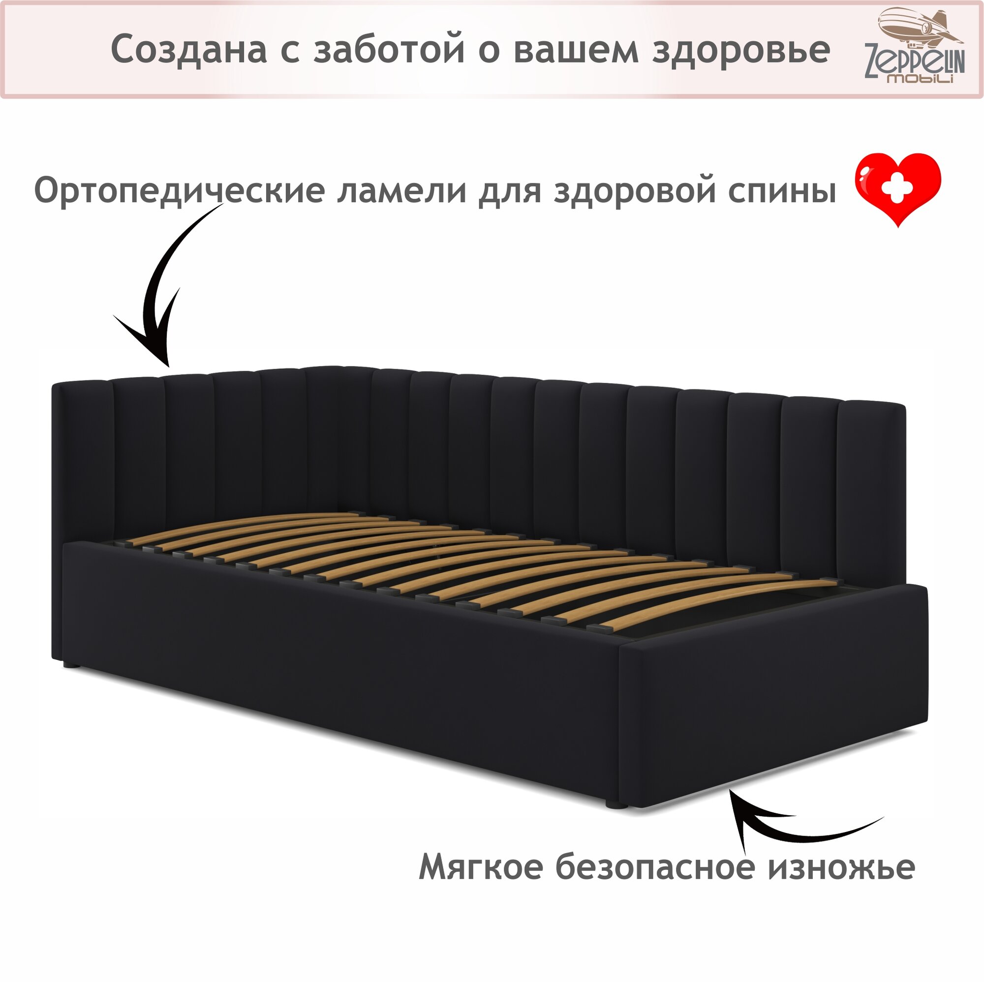 СохранитьКровать-тахта Milena 90х200 односпальная темная подъемная, мягкая спинка из велюра, с ортопедическими ламелями, с ящиком для хранения интересное: