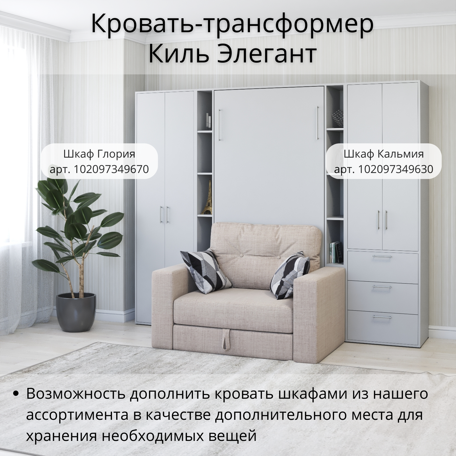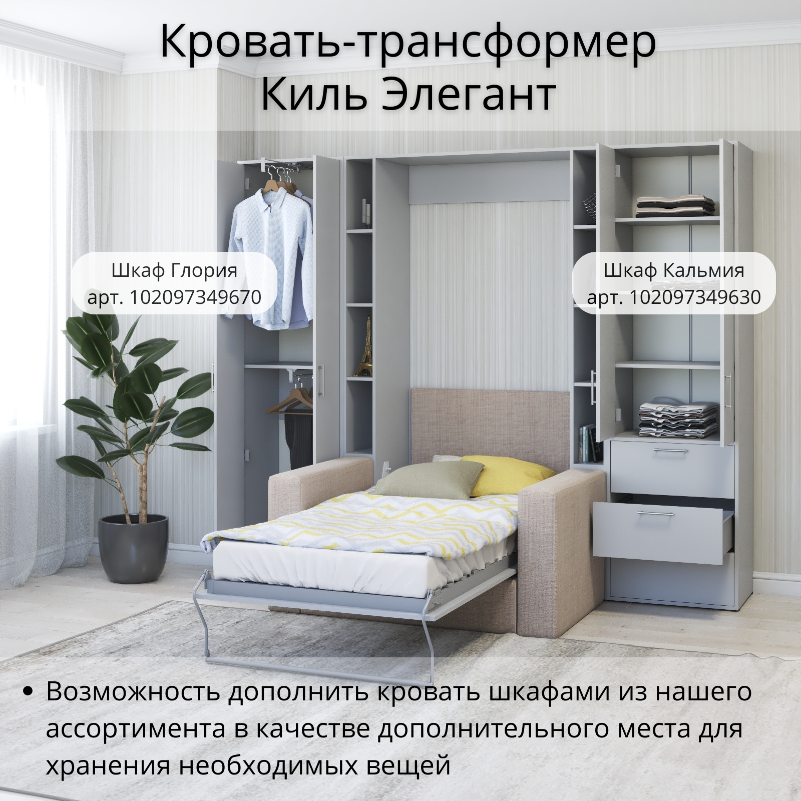 СохранитьШкаф кровать трансформер с креплением к стене, Stylint, Киль Элегант, 90х200, Серый шагрень интересное: