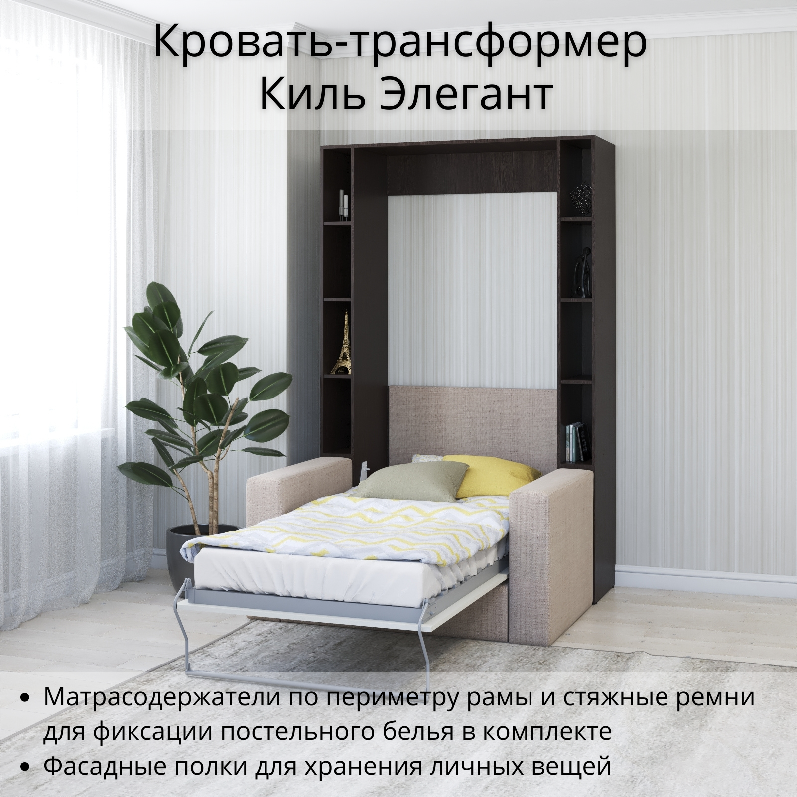 Шкаф кровать трансформер с креплением к стене, Stylint, Киль Элегант, 90х200, Венге магия