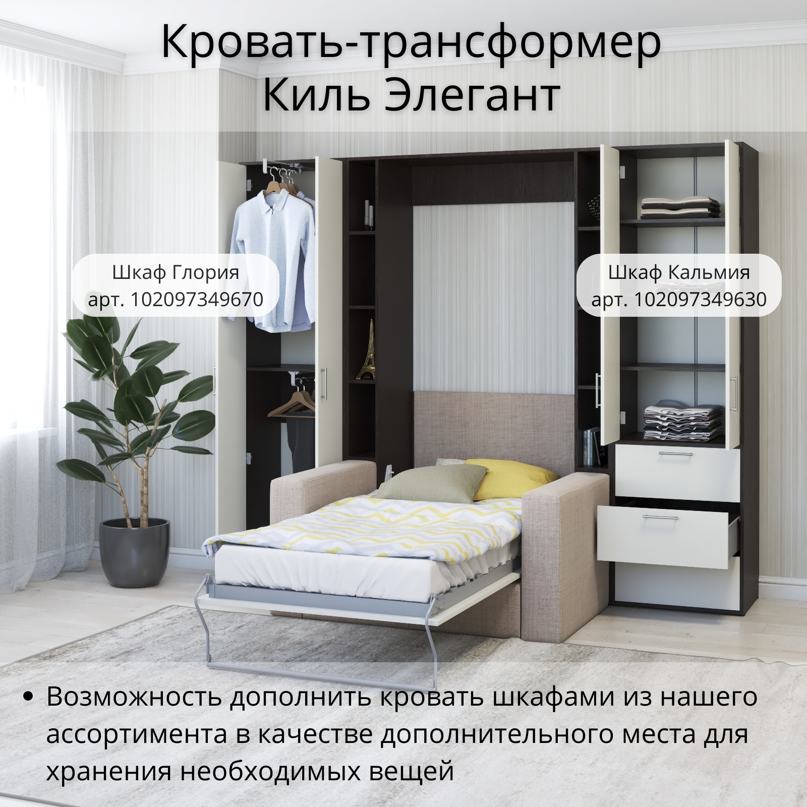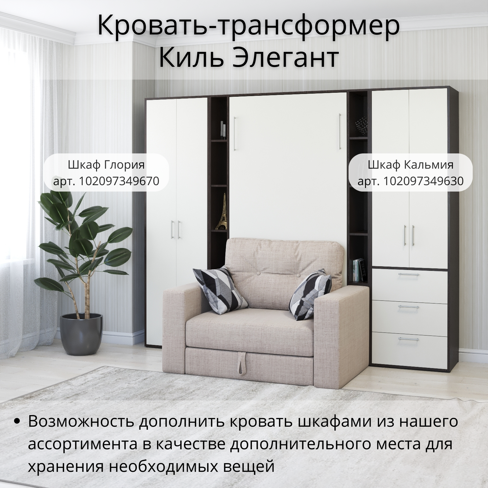 СохранитьШкаф кровать трансформер с креплением к стене, Stylint, Киль Элегант, 90х200, Венге магия/Белый платиновый интересное: