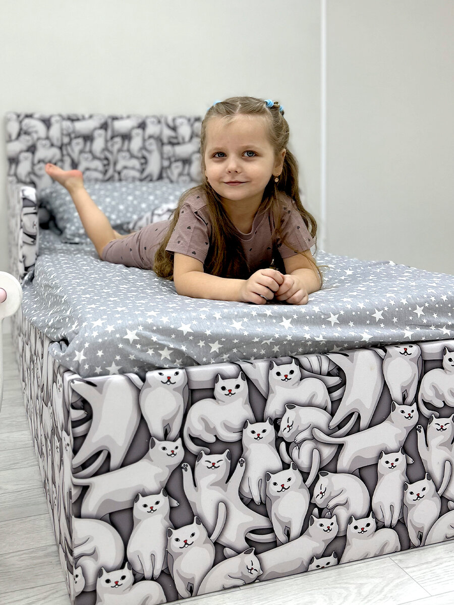 Купить Кровать детская с бортиком кроватка софа подростковая 160 80 кошки