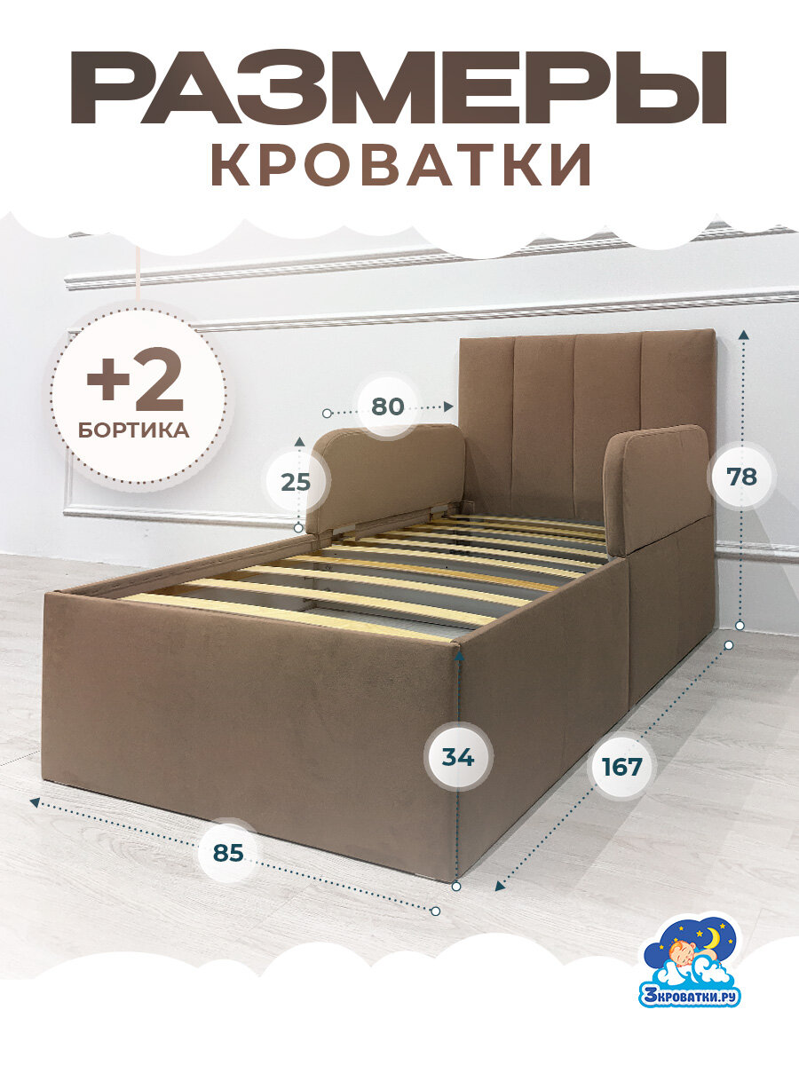 Кровать детская с бортиком кроватка софа подростковая 160 80 коричневый