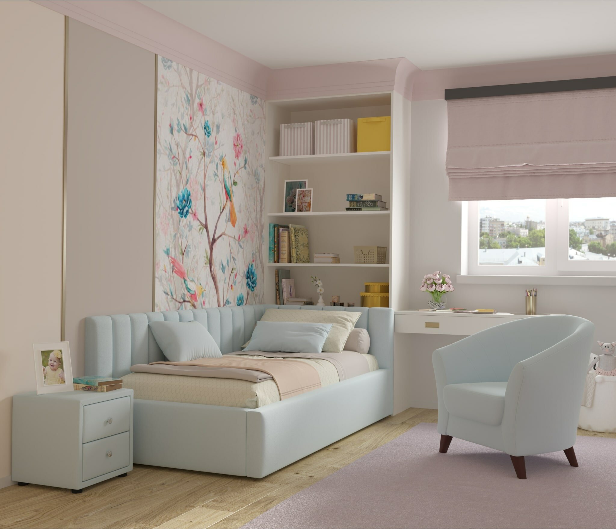 СохранитьКровать-тахта Milena 90х200 односпальная мятная, мягкая спинка из велюра, с ортопедическими ламелями интересное: