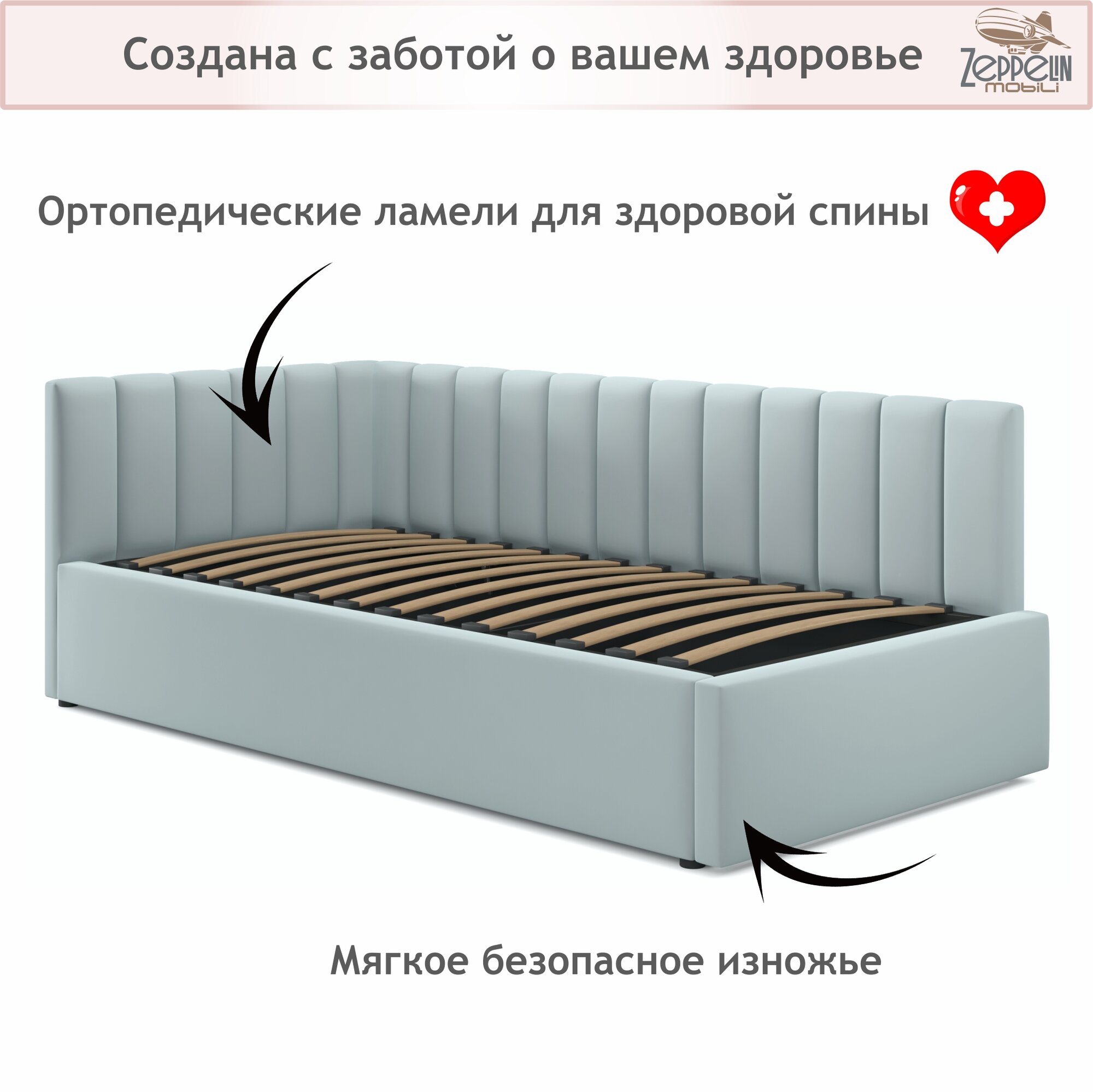 | Особенности | для детей, мягкое изголовье, основание под матрас, с бортиком, с изножьем, усиленная конструкция |