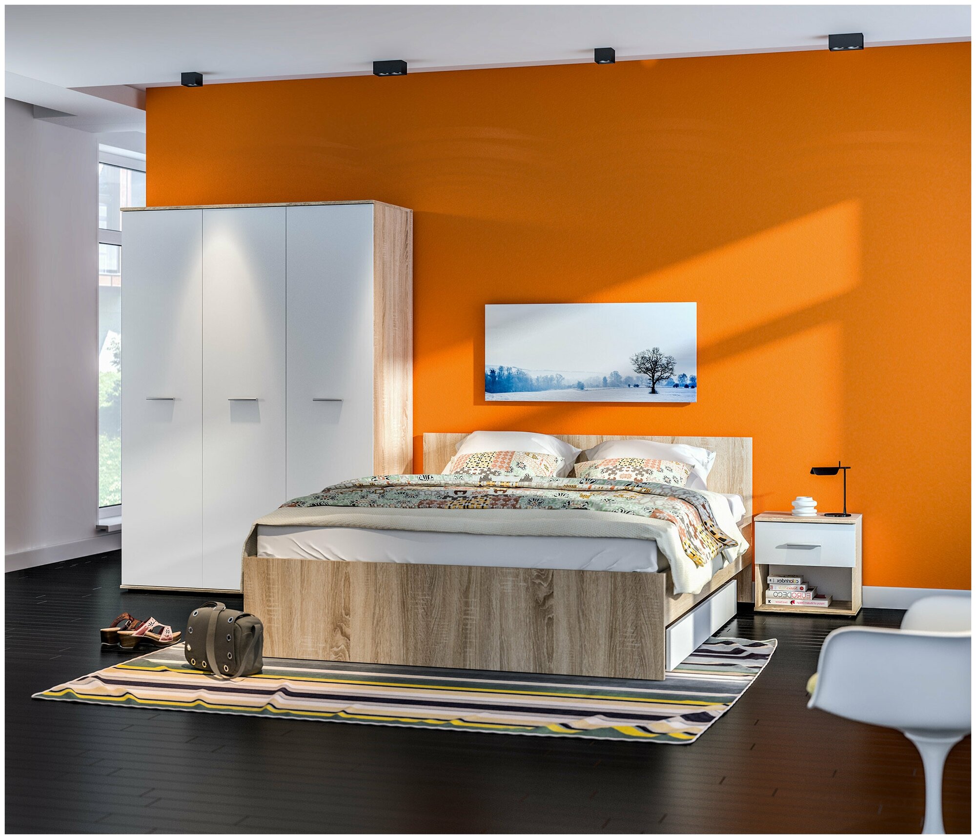 Кровать с ящиками 1800 с двумя тумбочками Камелия, цвет дуб сонома, ШхГхВ 296х217х78,2 см, спальное место 1800х2000 мм, без матраса, основание есть