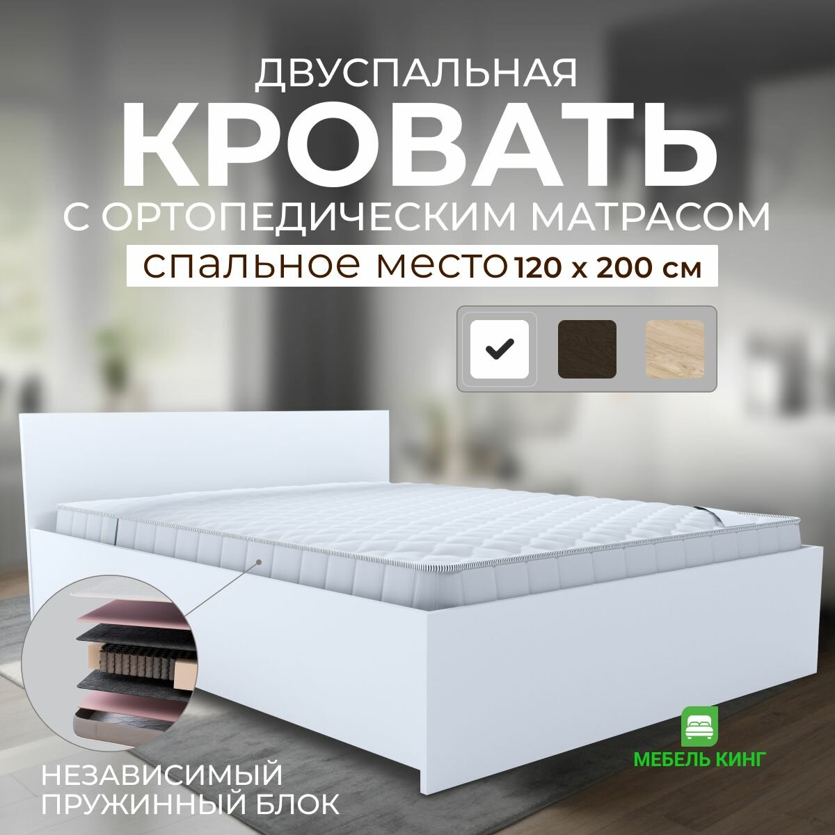 Купить Двуспальная кровать 120х200 Амелина с ортопедическим матрасом, независимый пружинный блок, белый
