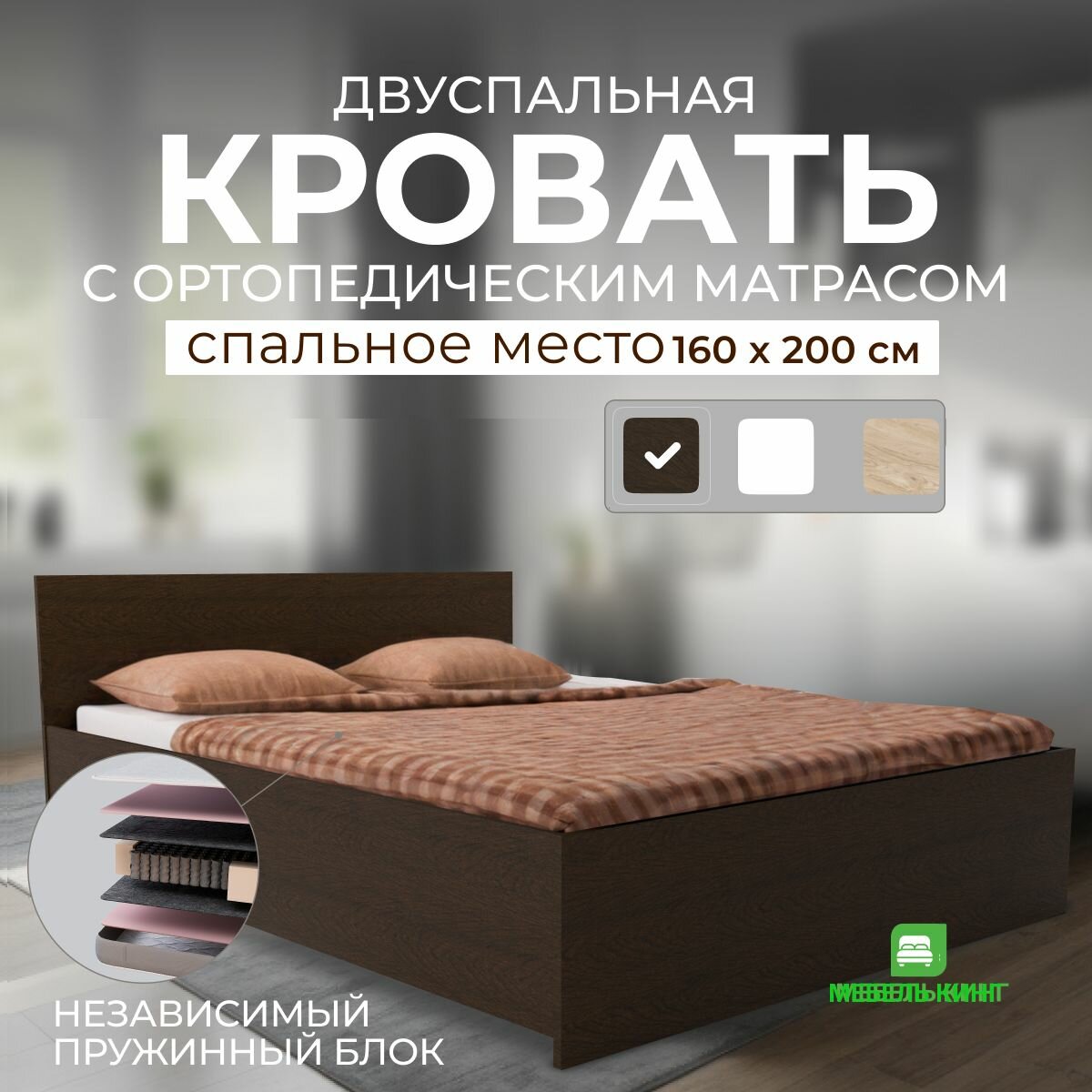 Купить Двуспальная кровать 160х200 Амелина с ортопедическим матрасом, независимый пружинный блок, венге