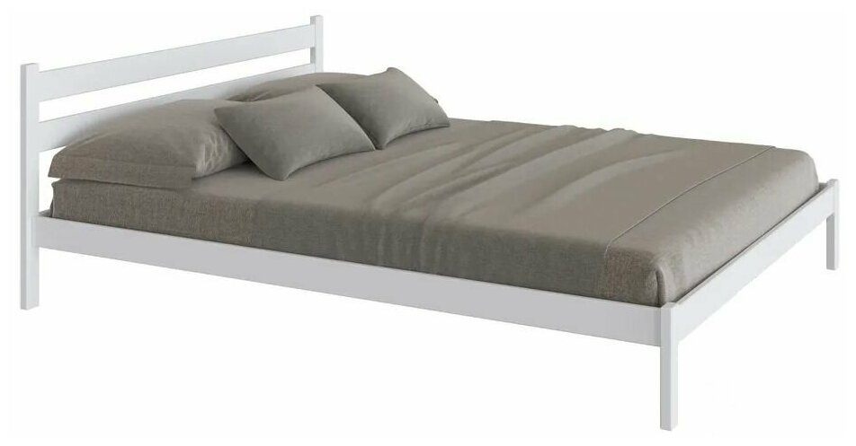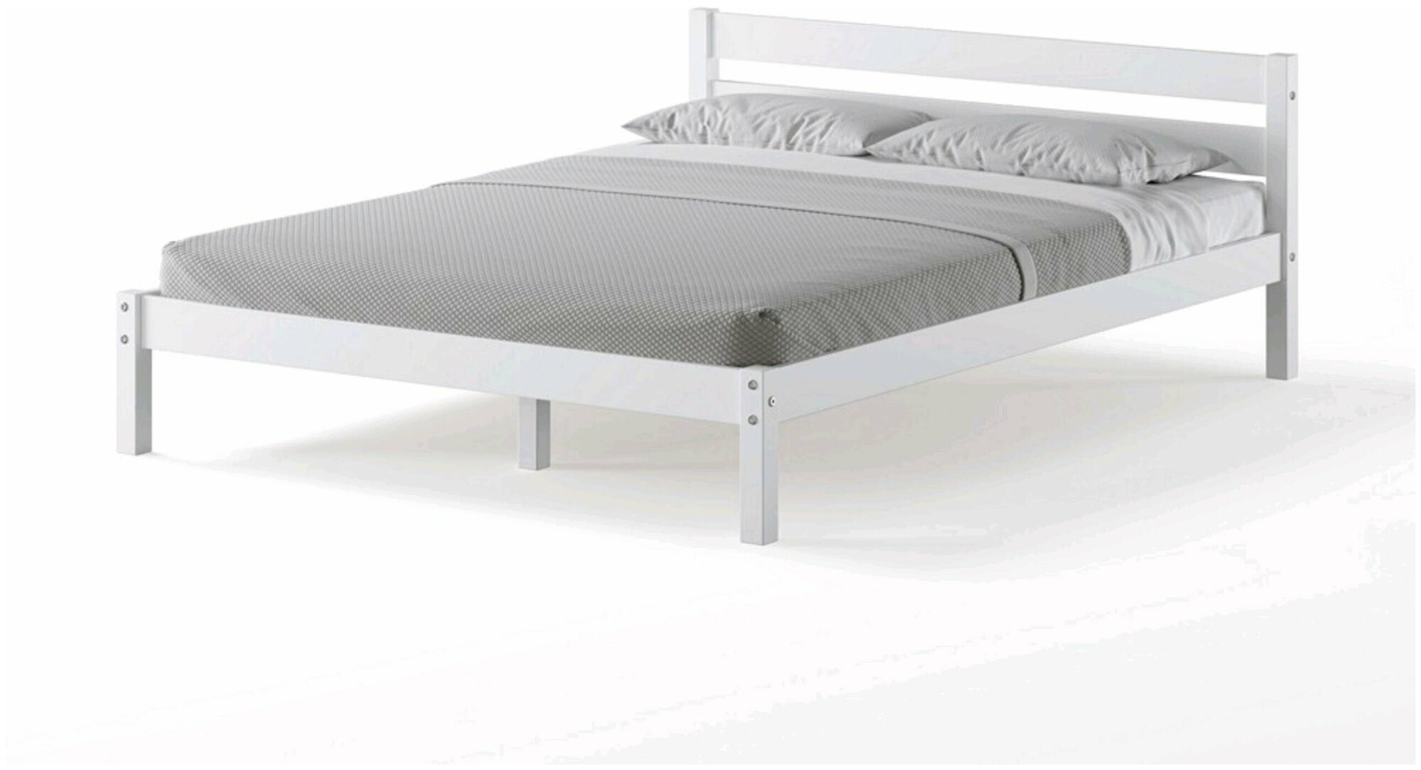 Кровать двуспальная деревянная из массива березы "Омега-1" 2000х1200, белый/серый