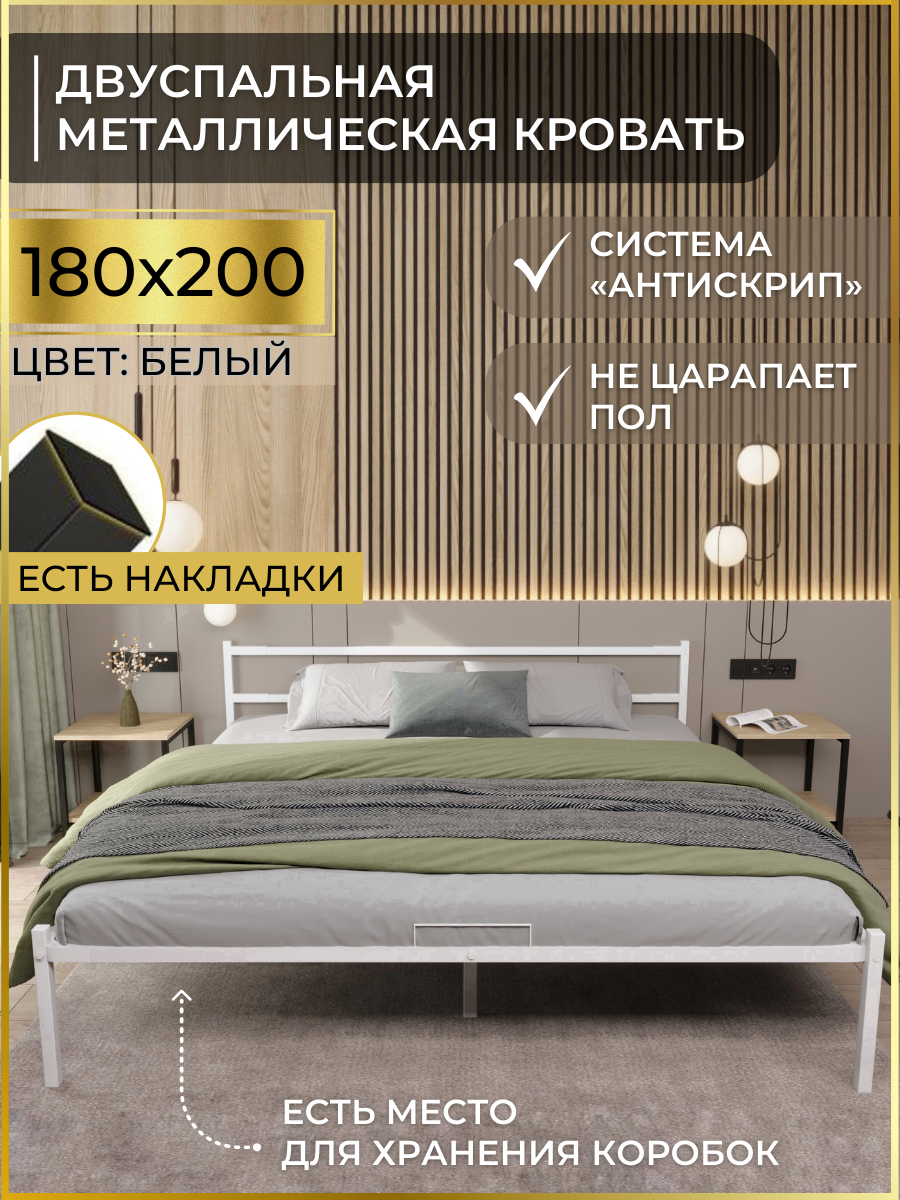 Кровать двуспальная металлическая белая 180х200 интересное: