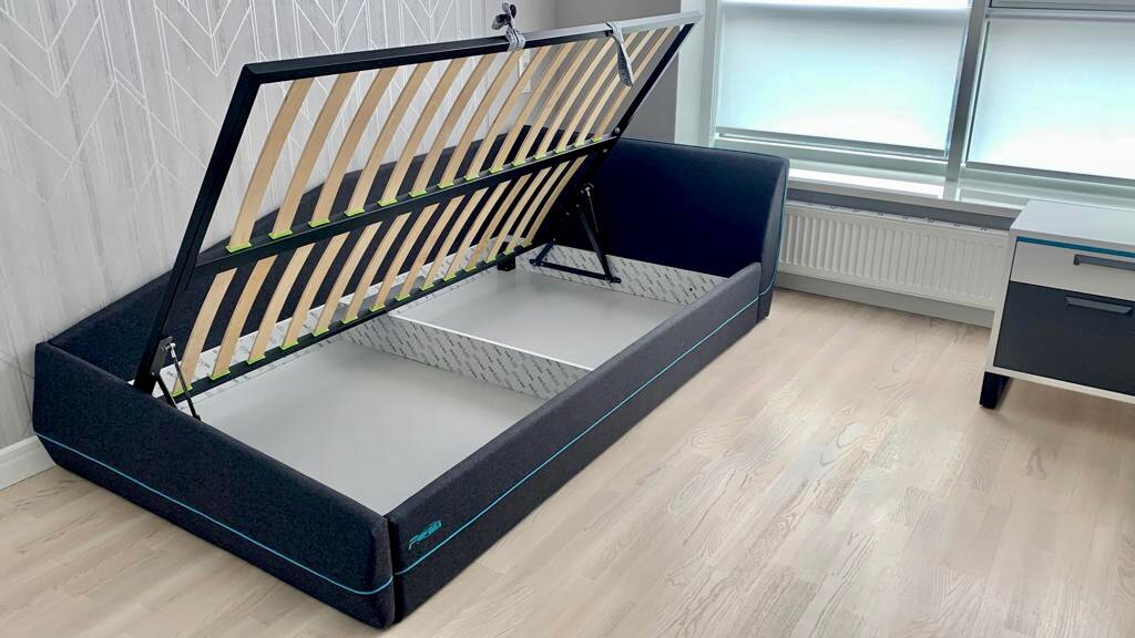 Фабрика Мирлачёва Кровать CARBON 90х190, реечное основание с подъемным механизмом, изголовье справа, цвет Tesla