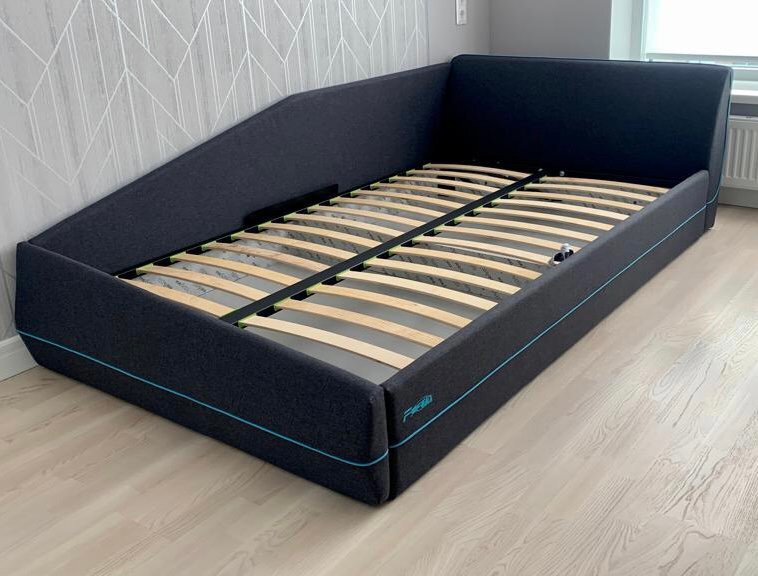 Фабрика Мирлачёва Кровать CARBON 90х190, реечное основание, изголовье справа с подъемным механизмом , кант бирюза
