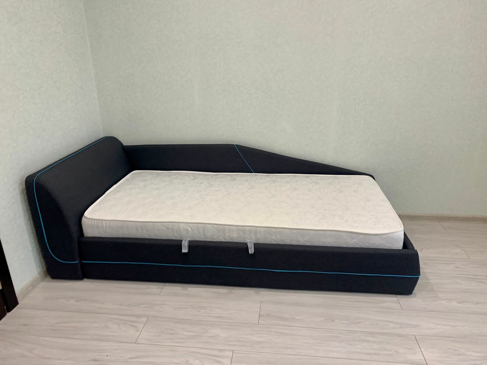 Фабрика Мирлачёва Кровать CARBON 90х190 со встроенным матрасным блоком, изголовье справа, кант бирюза