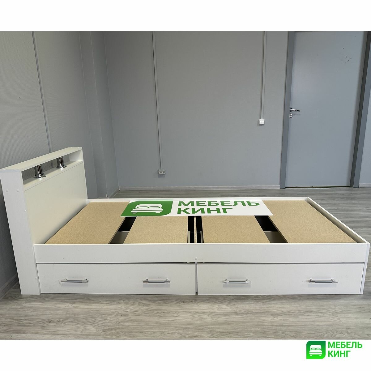 Двуспальная кровать с усиленным ДСП основанием Саломея с ящиками 140х200, белая, Мебель Кинг