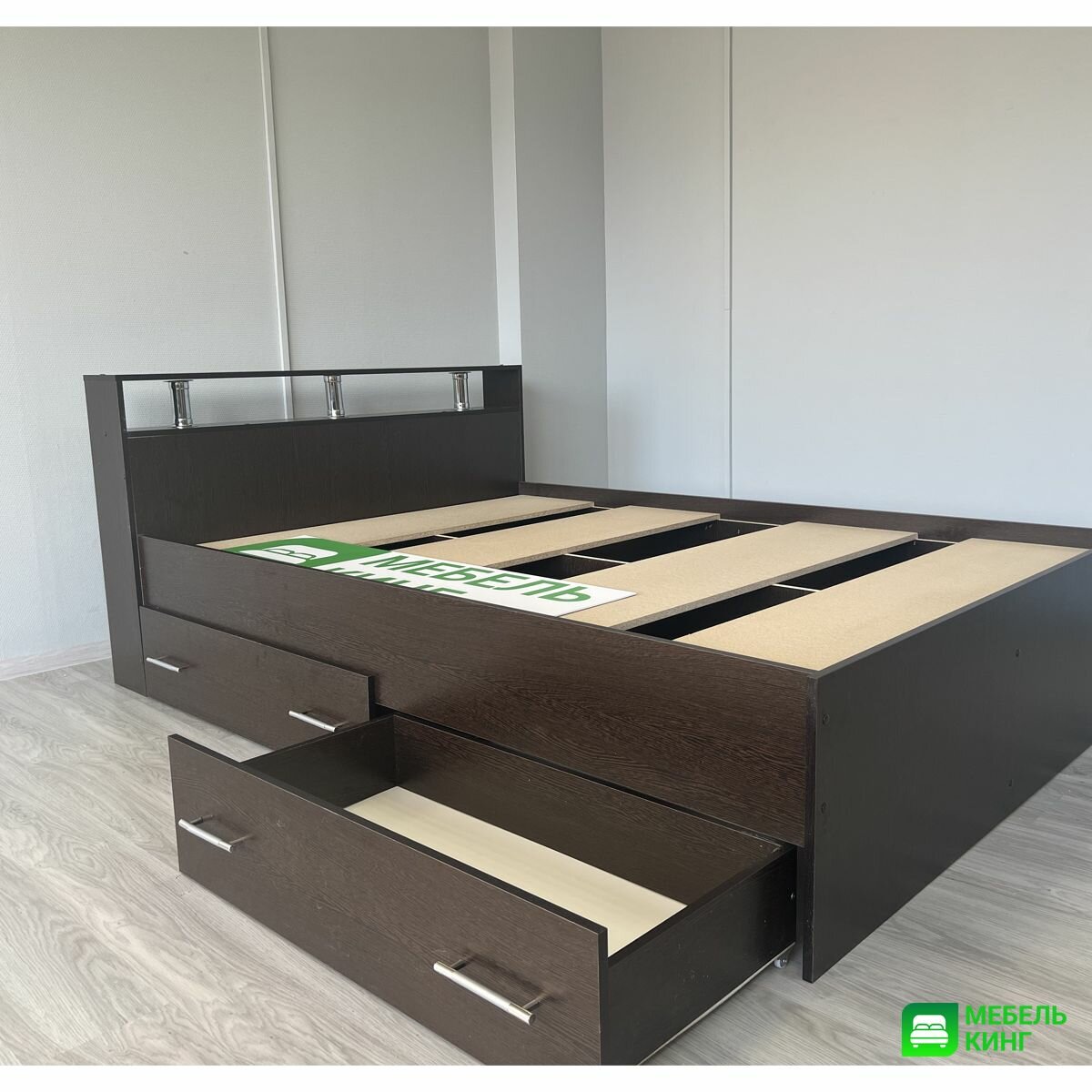 Двуспальная кровать с усиленным ДСП основанием Саломея с ящиками 140х200, венге, Мебель Кинг