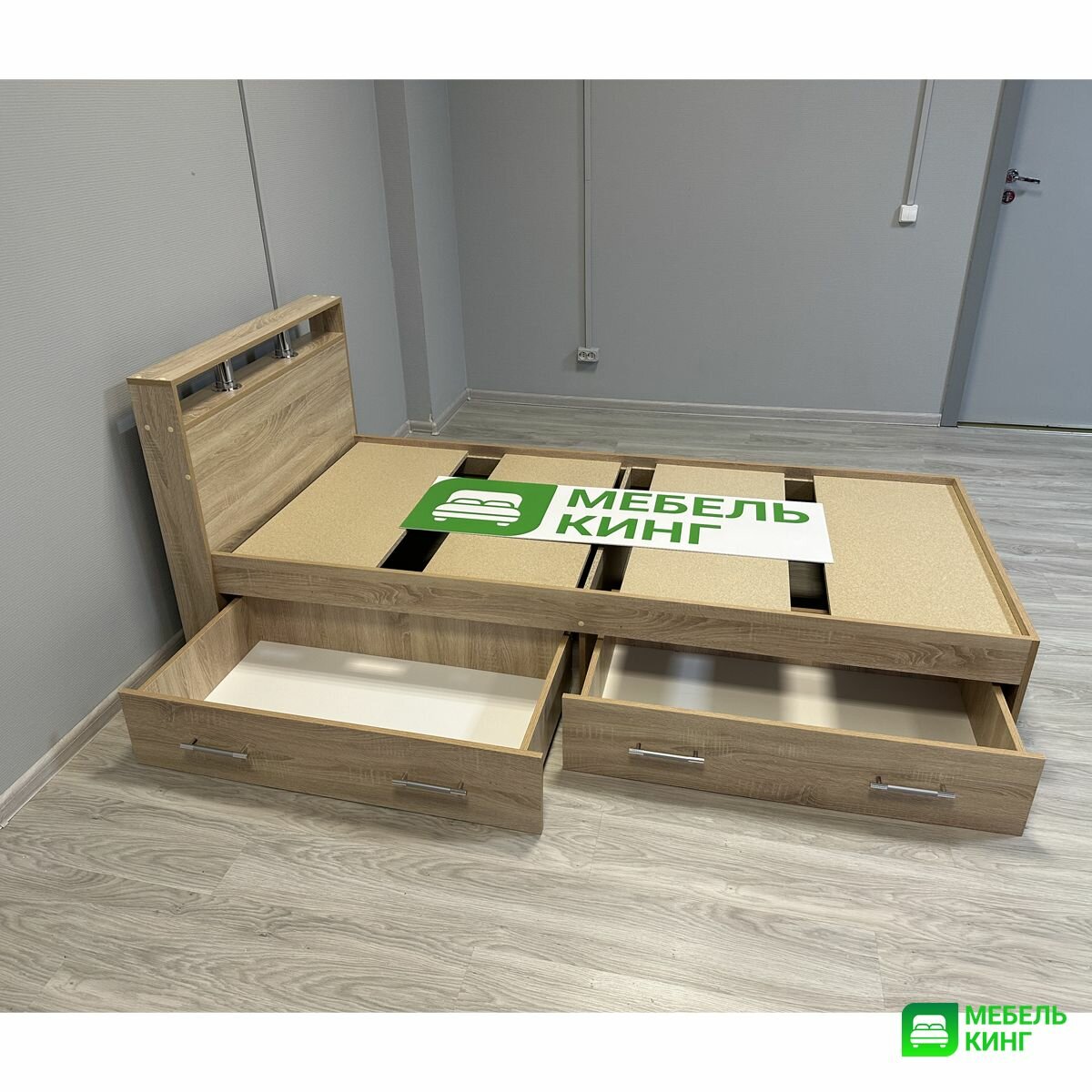 СохранитьКровать односпальная Саломея с ящиками 90х200, дуб сонома, Мебель Кинг интересное: