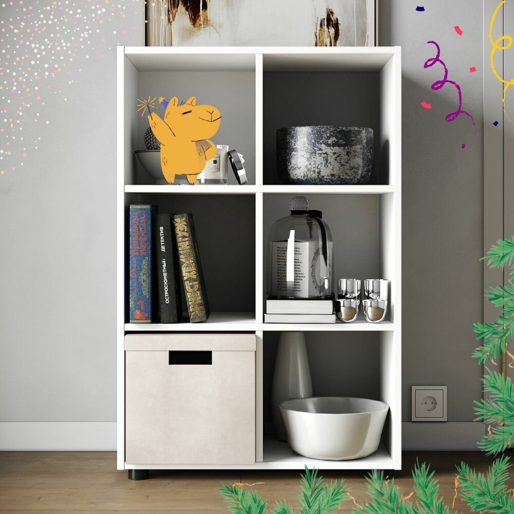 Стеллаж Kvadro-3 белый деревянный для хранения вещей, книг, игрушек, для дома и офиса, этажерка, полка 330х648х990 (ДхШхВ) интересное: