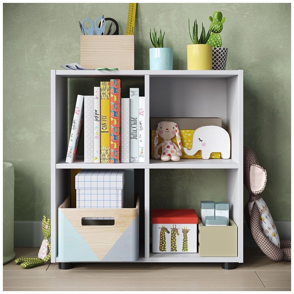 Купить Стеллаж Kvadro-2 белый деревянный для хранения вещей, книг, игрушек, для дома и офиса, этажерка, полка 330х648х674 (ДхШхВ)