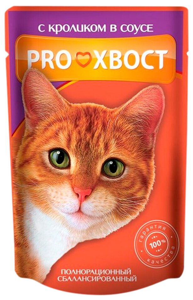Корм влажный ProХвост , Прохвост пауч для кошек Кролик в соусе 85г , 25 шт