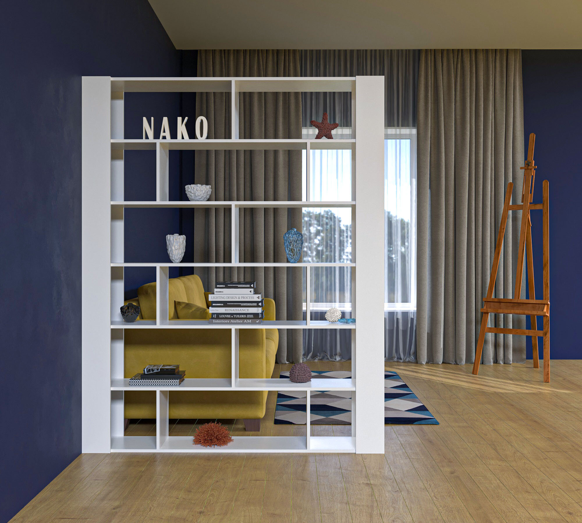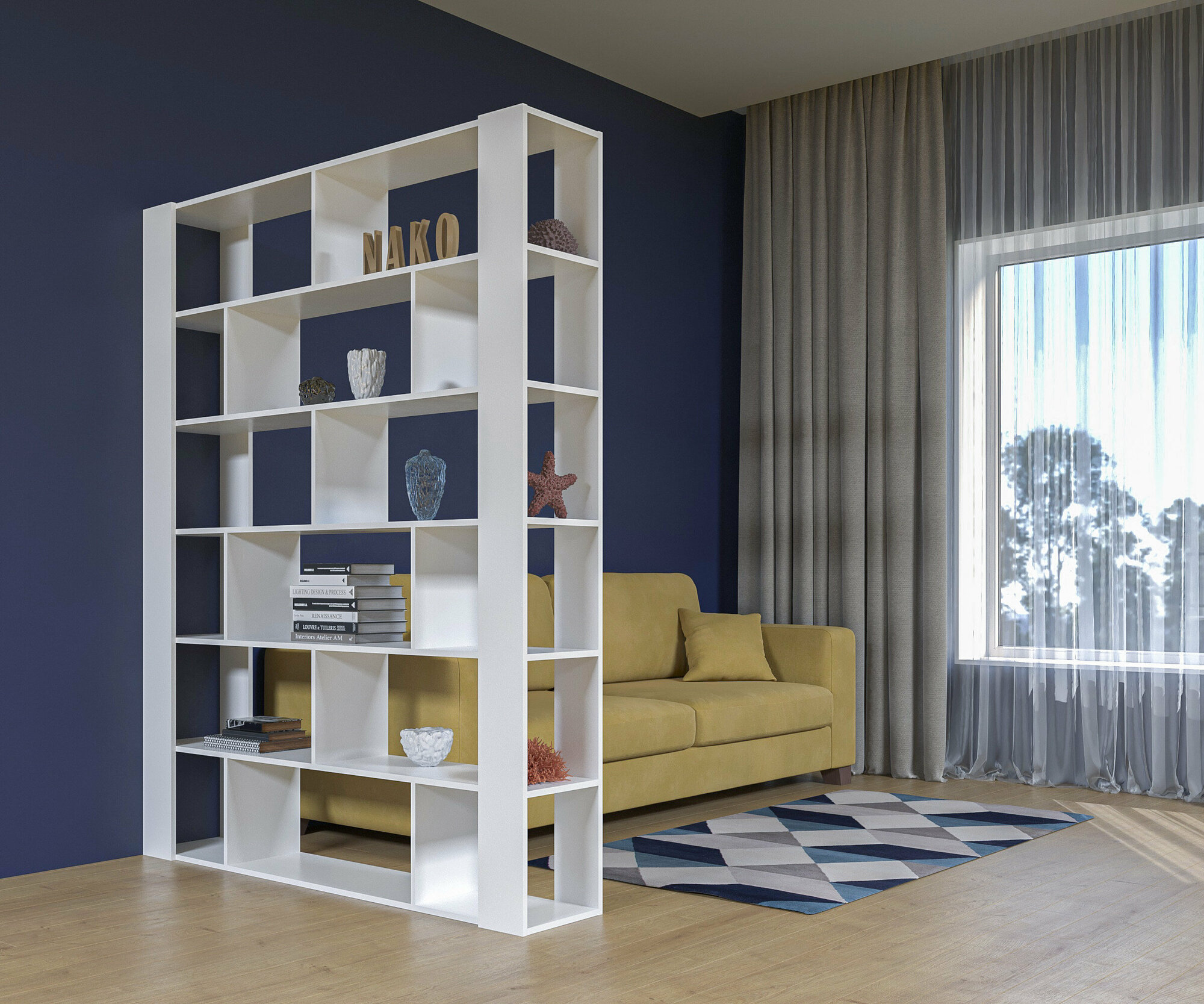 Стеллаж Перегородка в стиле Лофт модель Сальса Белый (ШхВхГ) 150х180х28см.